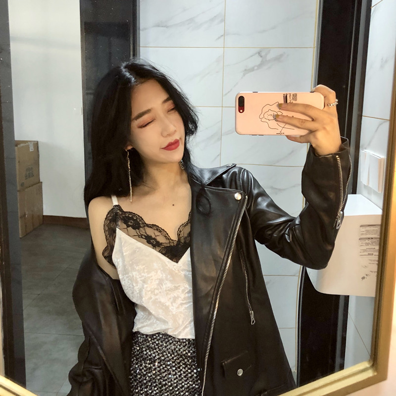 時尚套裝新款小心機吊帶背心V領性感露肩蕾絲上衣西裝外套兩件套