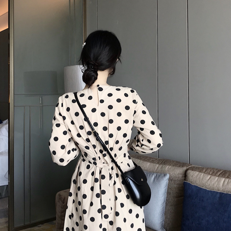復古波點連衣裙2018新款女長袖秋中長款寬松韓版收腰a型顯瘦裙子