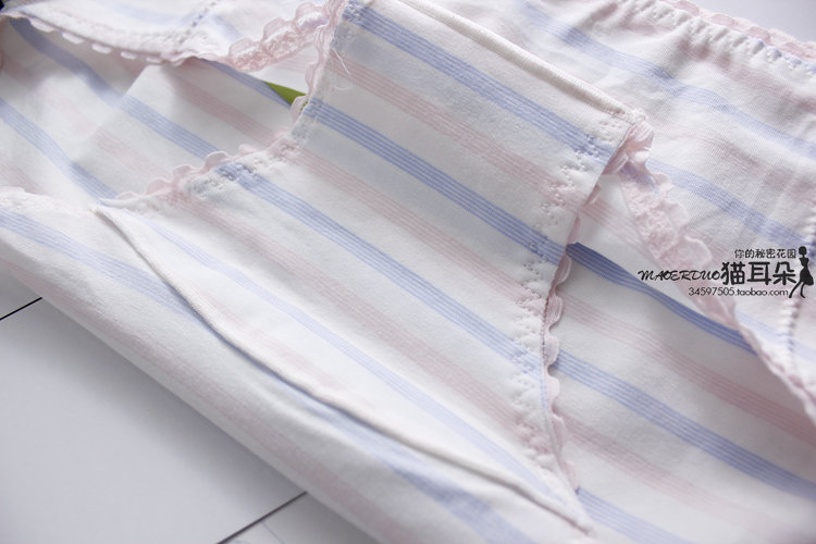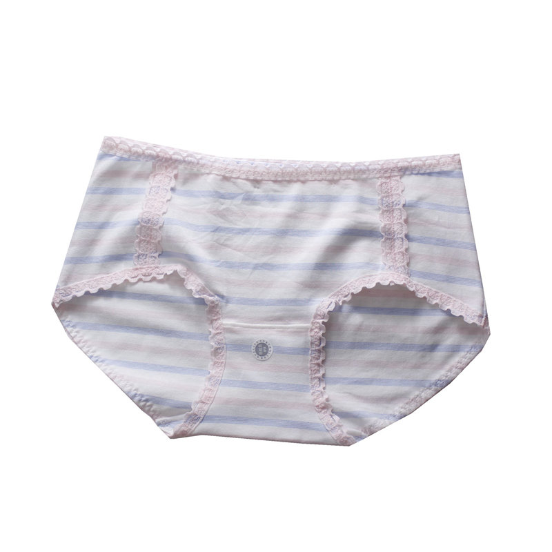 文靜學院風條紋 柔軟棉莫材質 文藝清新的條紋圖案 選用細有機棉 給你溫柔的呵護 精致蕾絲鑲嵌腰部 舒適透氣,基本款百搭,可愛的印花看起來文藝小清新, 喜歡這份簡單安雅 中腰的款式 舒適包臀