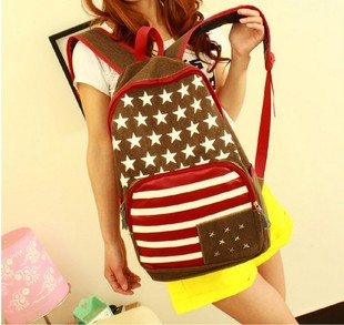 / 美國國旗學生書包帆布皮雙肩包女 好看背包女韓版潮流學院風