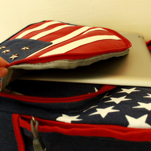 美國國旗學生書包帆布皮雙肩包女 好看背包女韓版潮流學院風