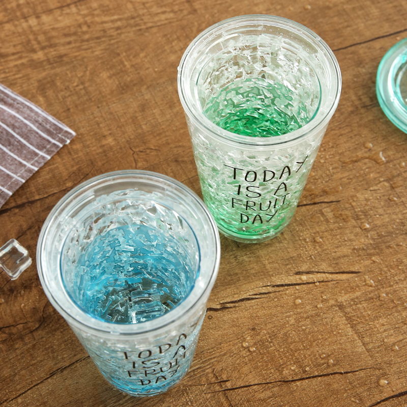 0°夏日冰杯創意雙層清涼吸管杯冰飲杯降溫隔層果汁水杯