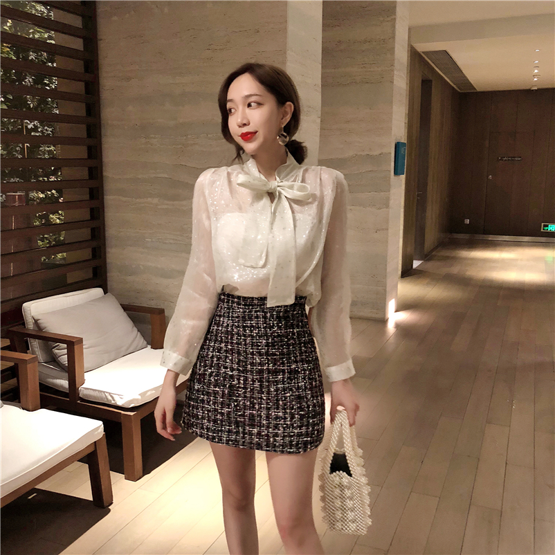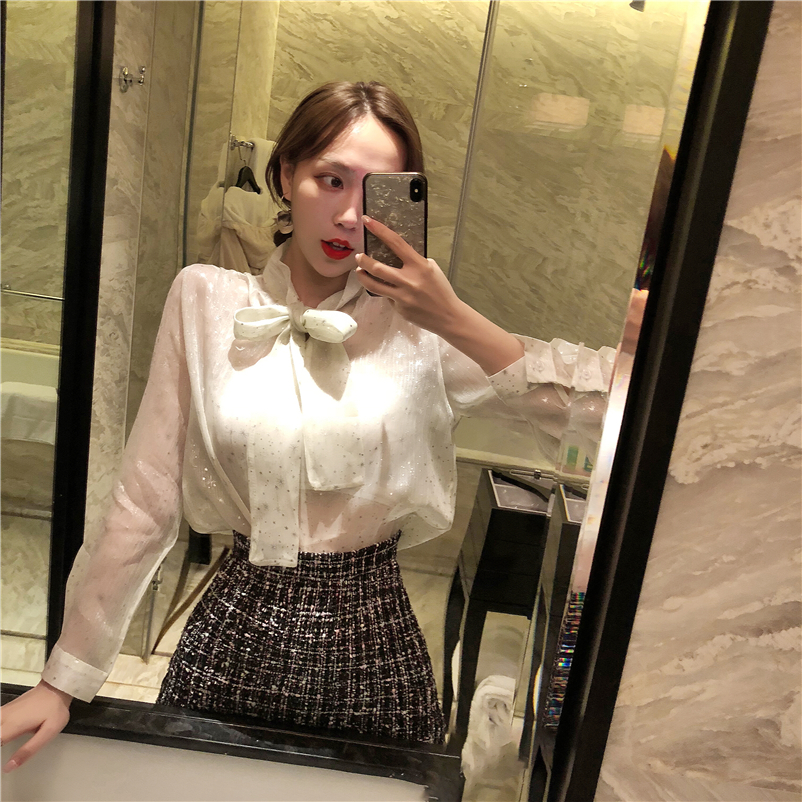 這期推出的韓版系帶蝴蝶結長袖款襯衣會滿足你的胃口