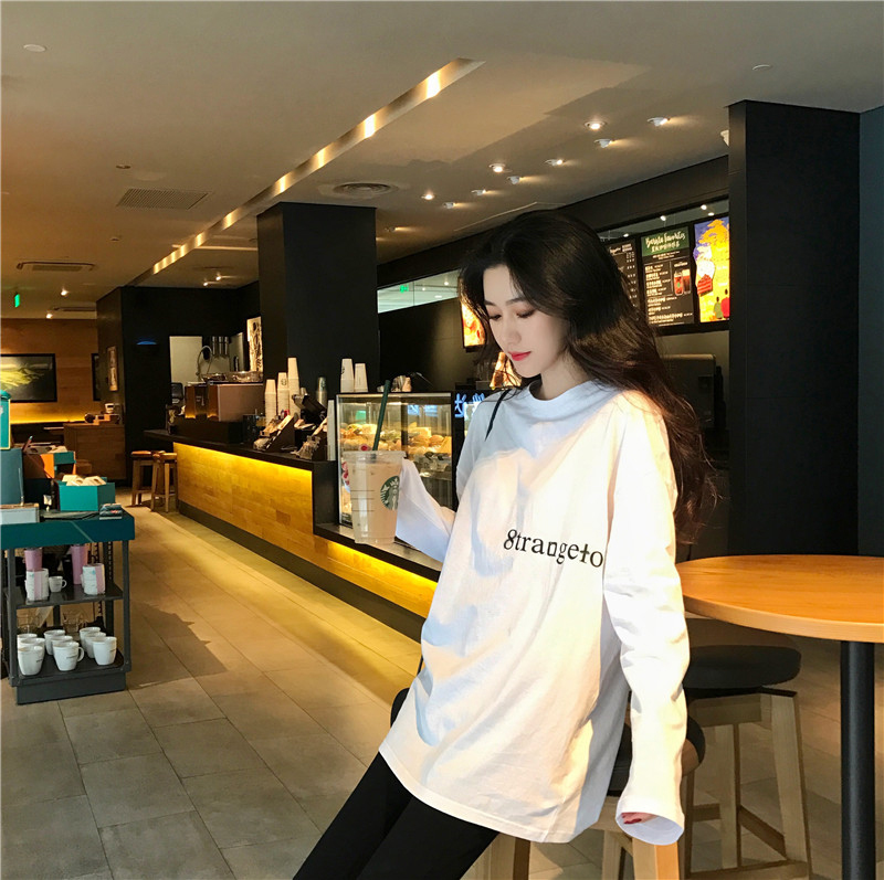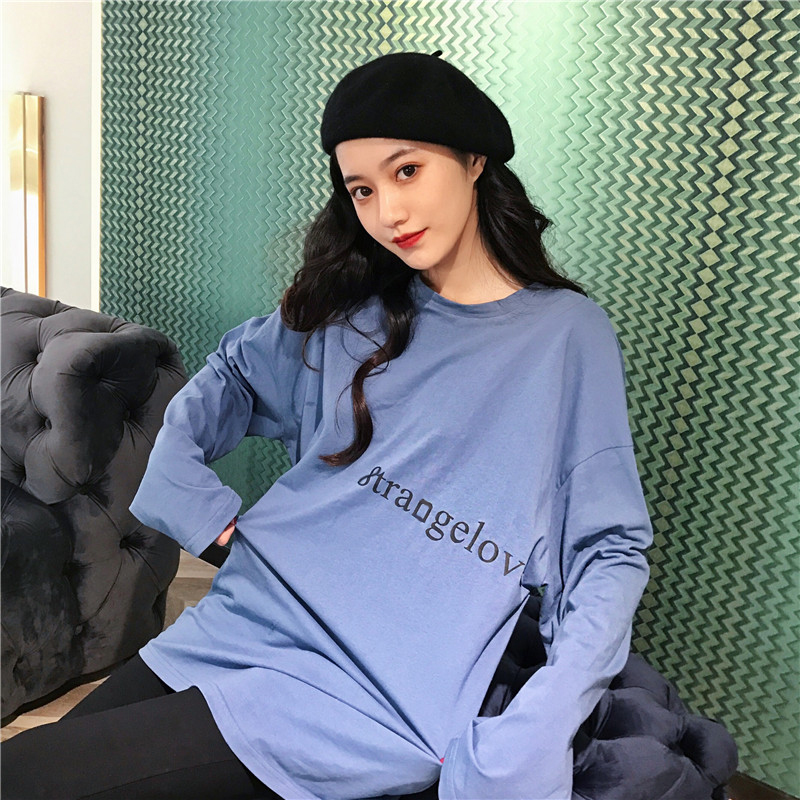 / 秋冬百搭新款韓版中長款顯瘦小清新chic字母印花寬松打底T恤上衣