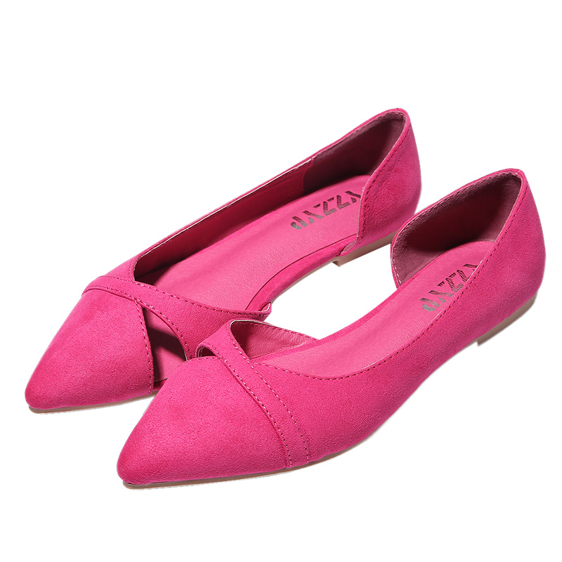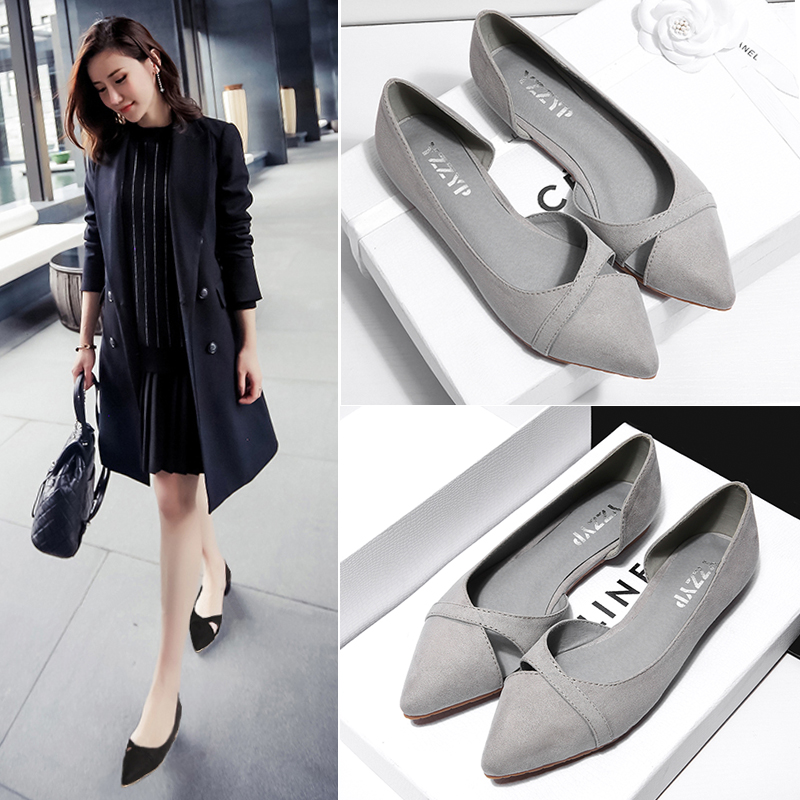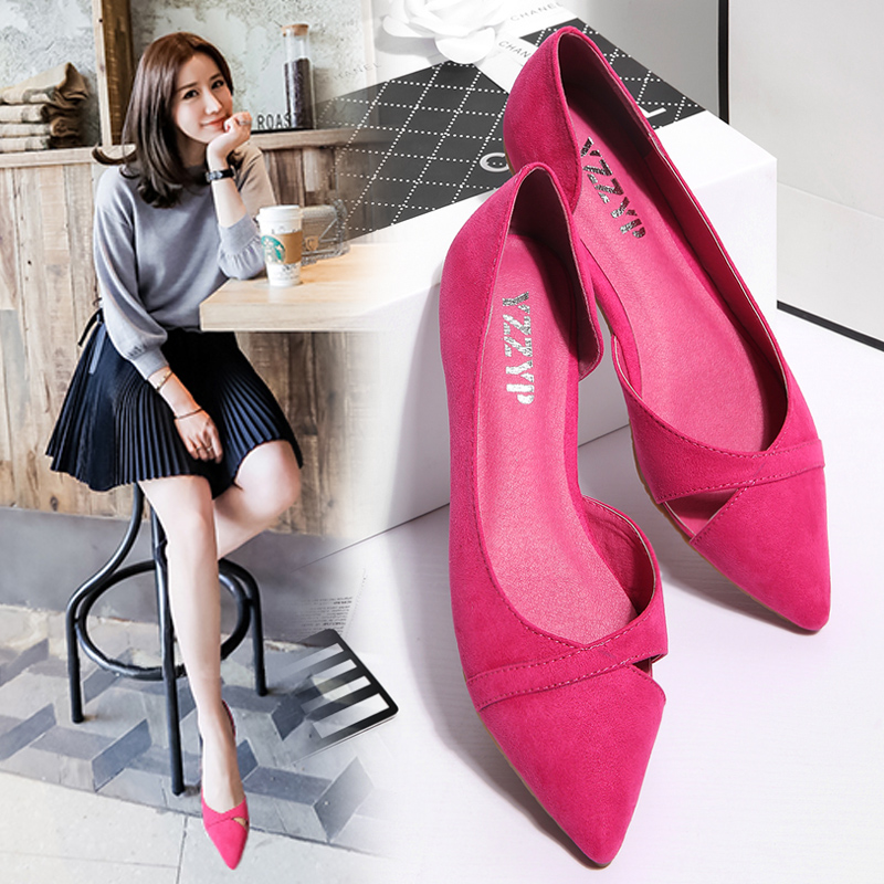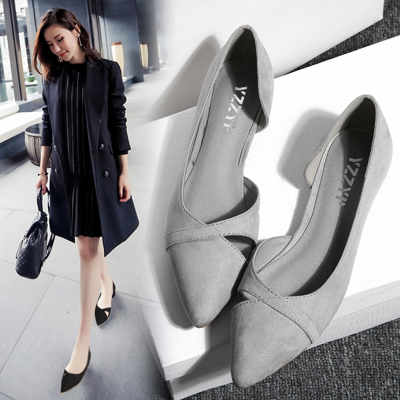 單鞋女平底鞋春秋新款韓版絨面尖頭淺口休閑鞋低幫平跟女鞋子