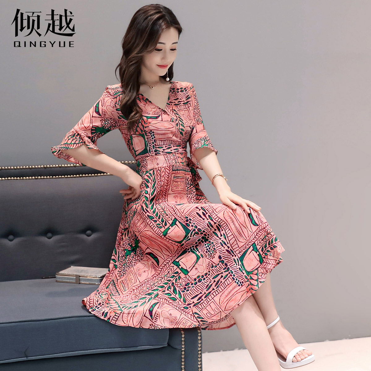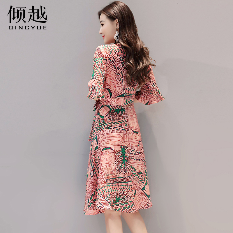 / 雪紡連衣裙女中長款2017夏季新款時尚氣質韓版修身顯瘦喇叭袖裙子