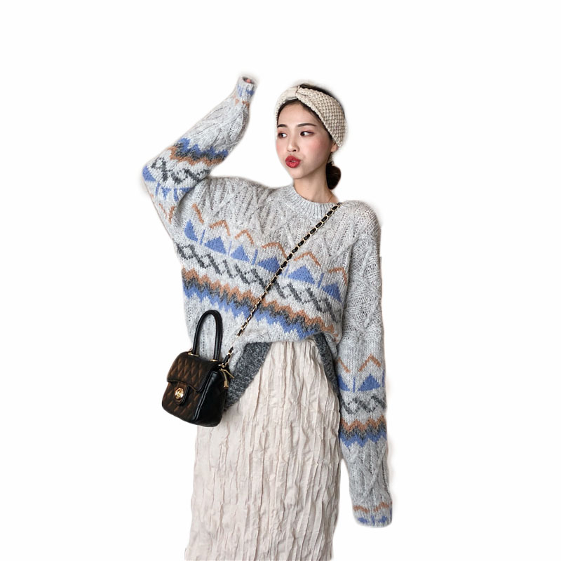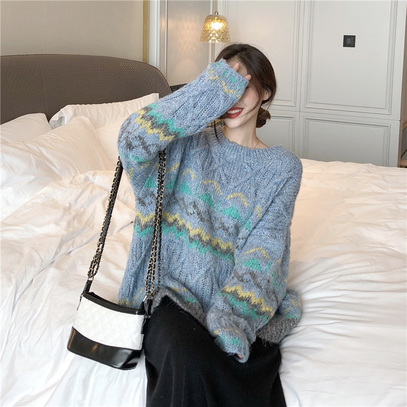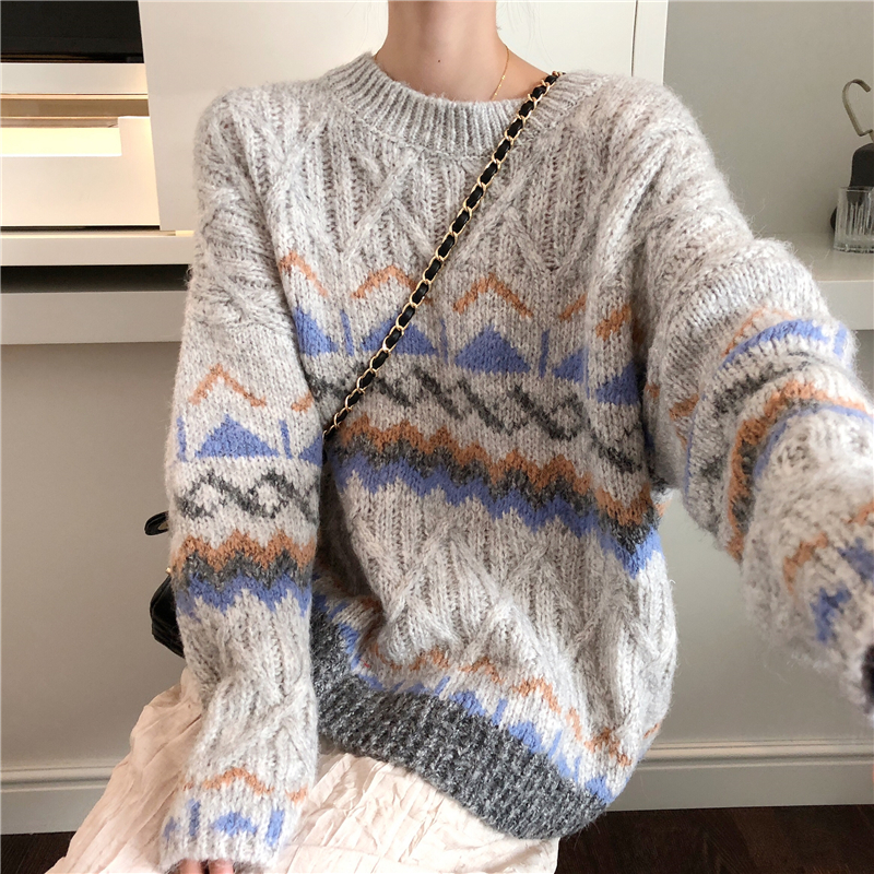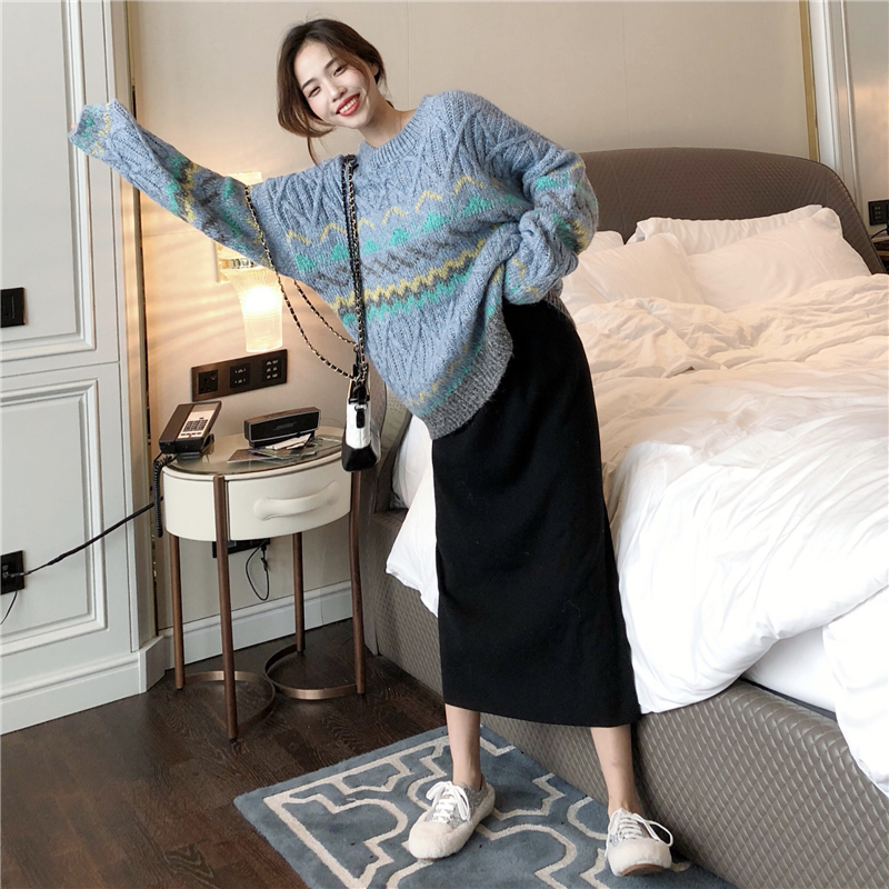 網紅同款復古慵懶風套頭毛衣女2018新款秋冬中長款寬松加厚上衣潮