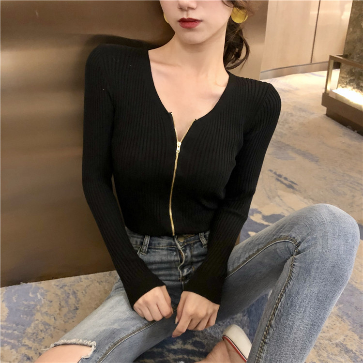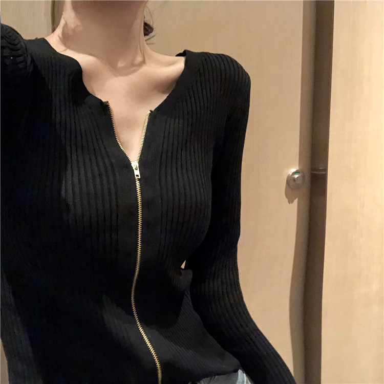 秋季慵懶風針織開衫韓版時尚百搭純色上衣修身短款長袖女士打底衫