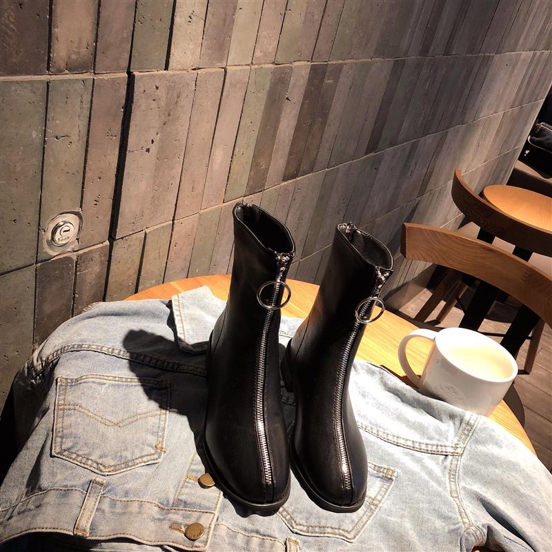 新款韓版網紅女靴子秋冬中筒時裝靴加絨前拉鏈氣質百搭女鞋靴子潮