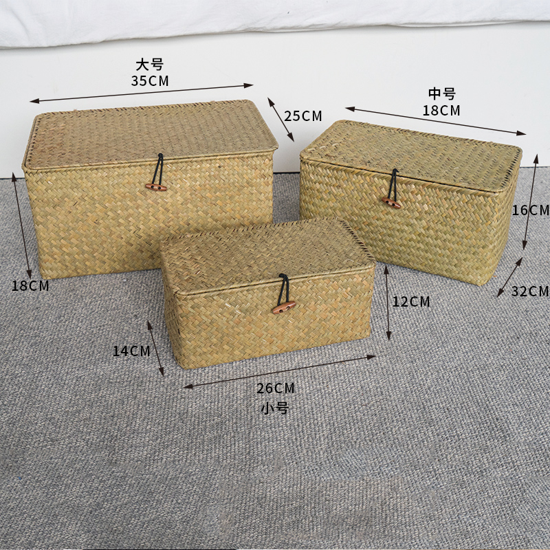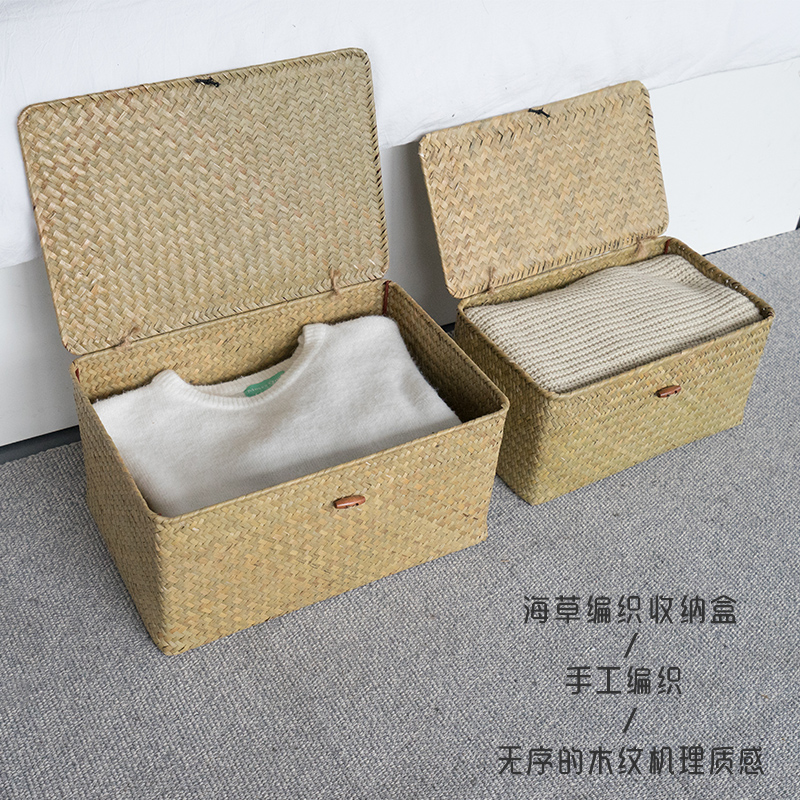 海草編織收納盒透氣防潮儲物箱收納筐環保草編桌面整理箱