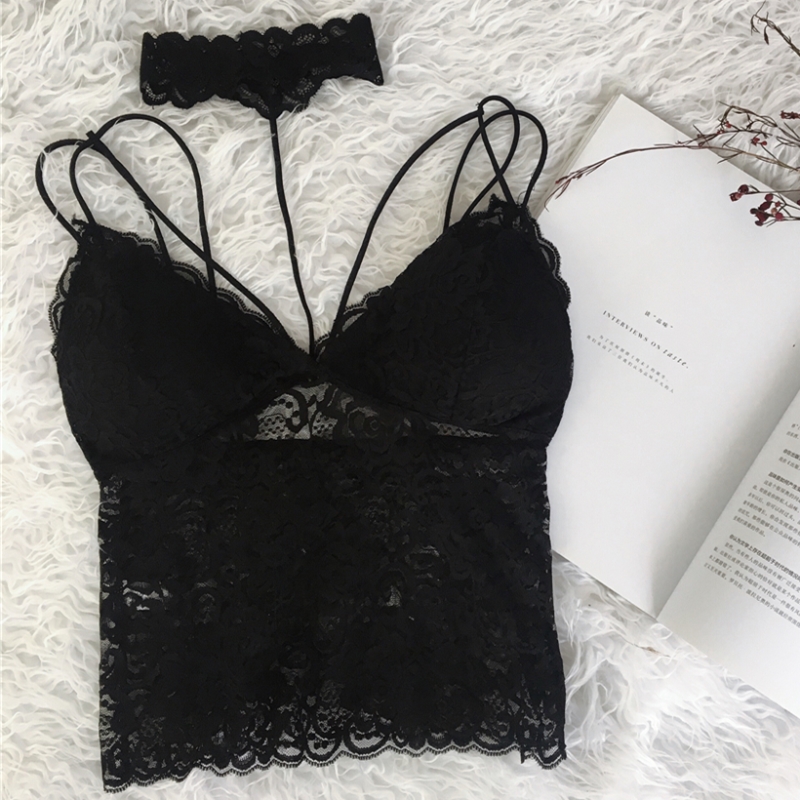 / 性感蕾絲裹胸抹胸無鋼圈掛脖小心機設計感少女文胸內衣吊帶小背心