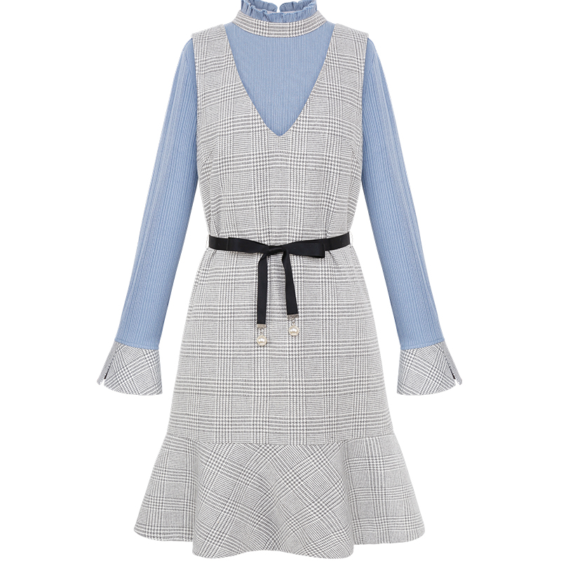 MG小象chic毛針織衫女秋冬新款格子背帶連衣裙小清新喇叭袖上衣潮