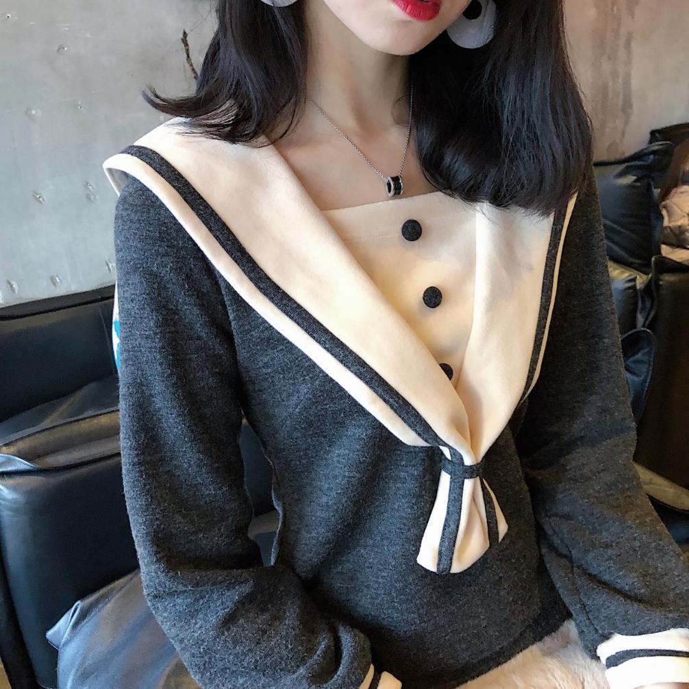 2018韓版秋裝新款時尚中長裙復古chic百搭氣質水手服打底連衣裙女