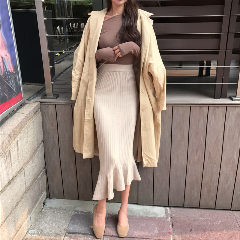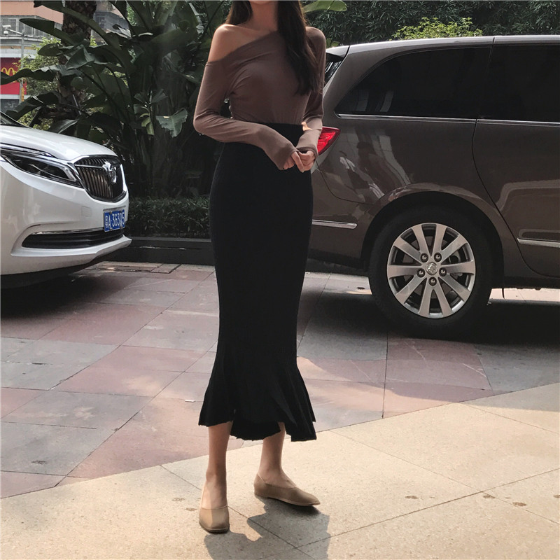 / 2018秋裝新款韓版高腰長裙百搭修身裙子女純色chic斜魚尾半身裙潮