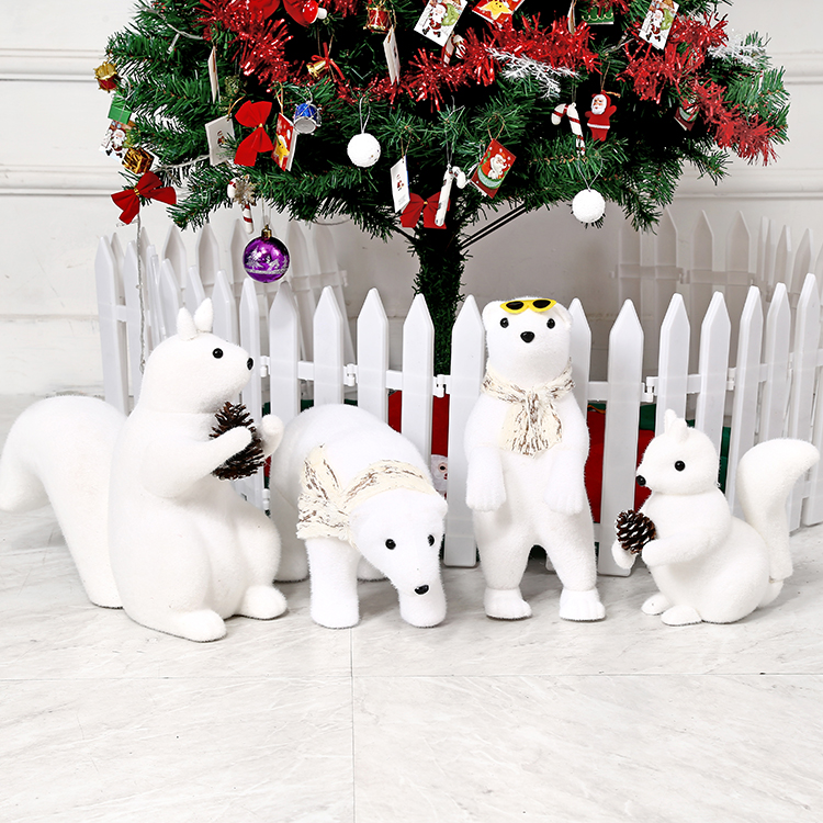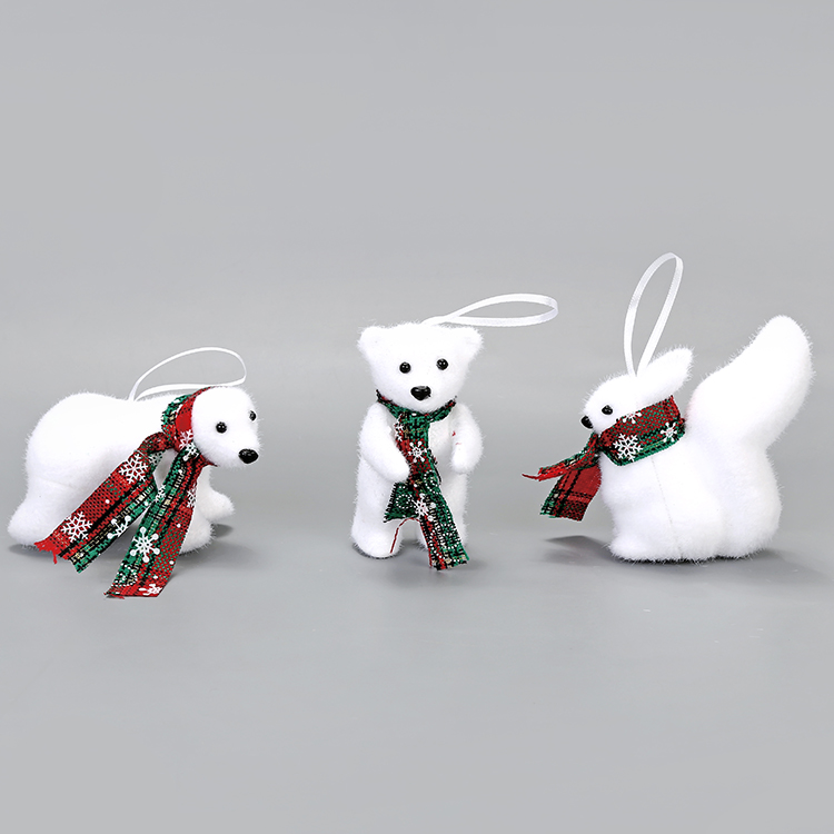 / 圣誕節裝飾品 圣誕白色熊 雪景北極植絨熊 桌面場景擺件裝飾用品
