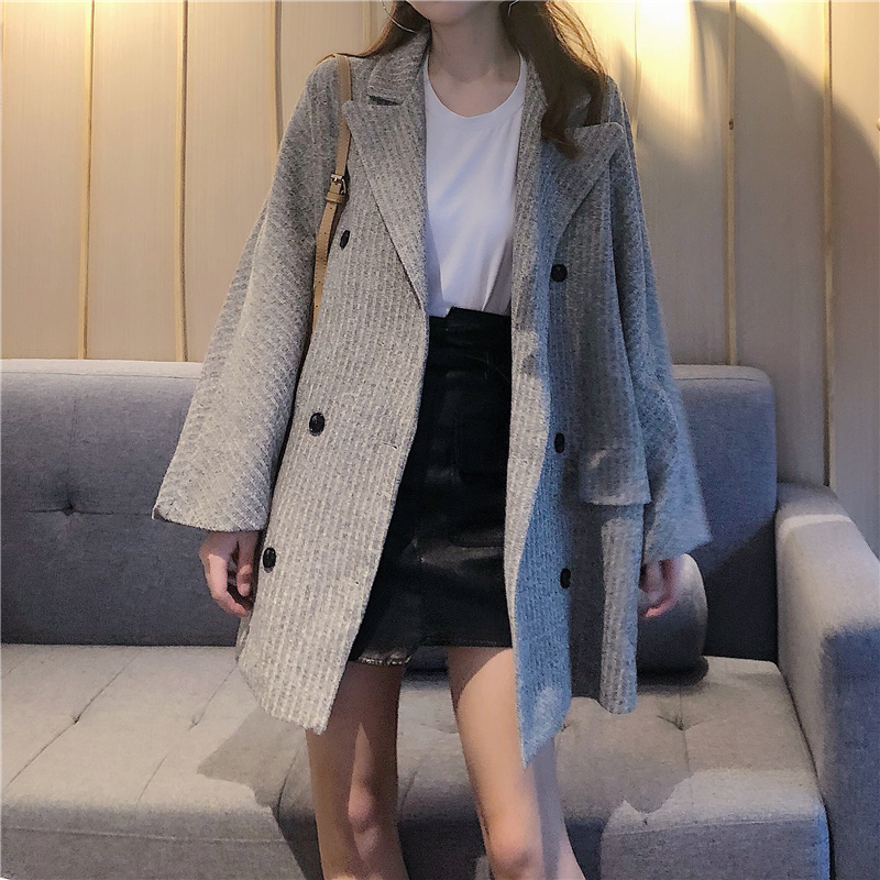 / 時尚小香風新款韓版復古chic秋季簡約雙排扣毛呢寬松氣質大衣外套
