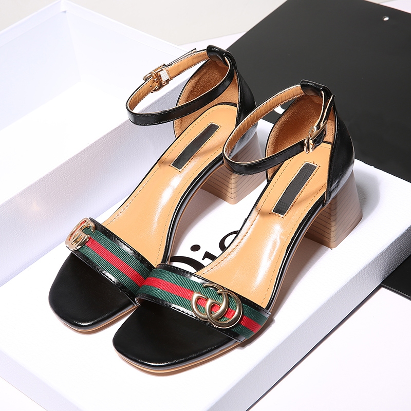 涼鞋女夏粗跟高跟鞋新款夏天百搭中跟一字扣女士羅馬涼鞋女鞋