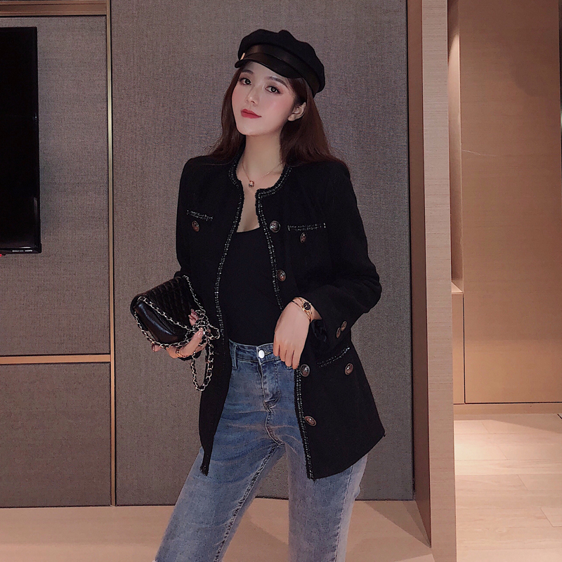 復古氣質百搭新款秋季韓版chic長袖小西裝單排扣時尚顯瘦毛呢外套