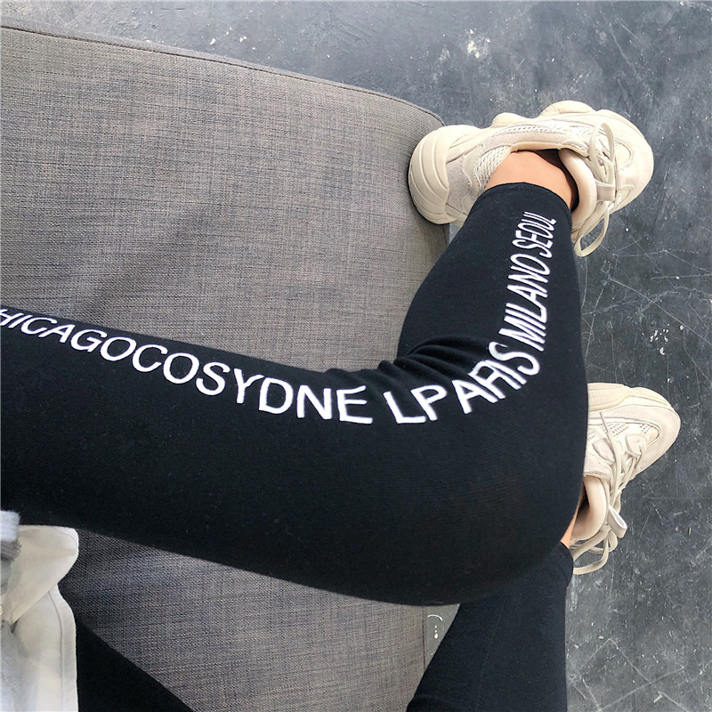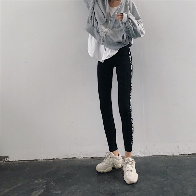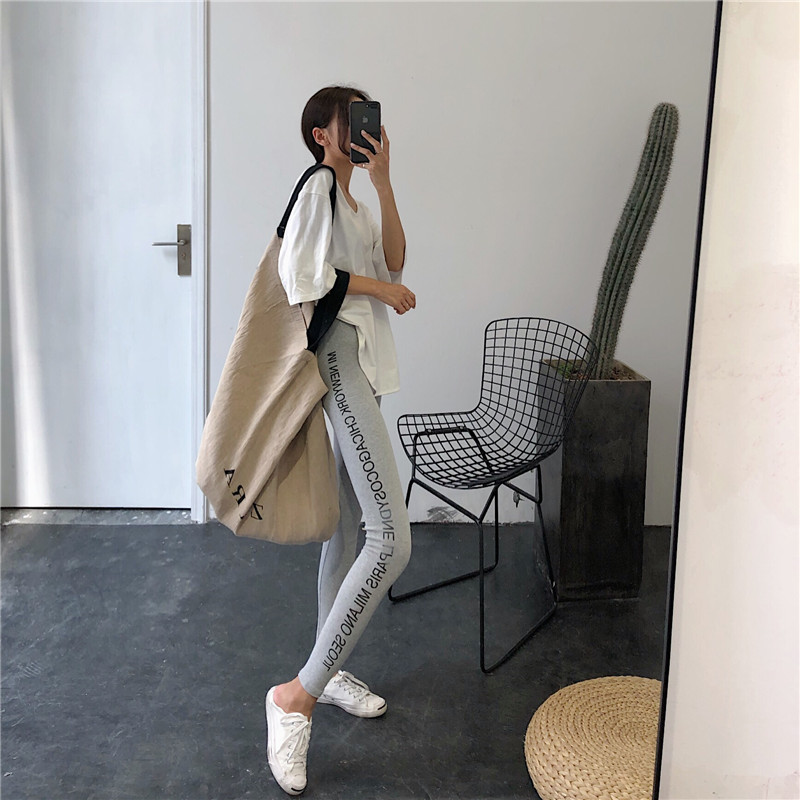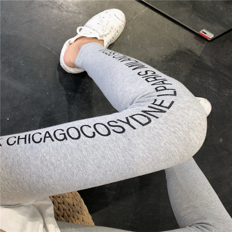 / 新款韓版長褲百搭字母印花高腰薄款小腳褲潮修身顯瘦外穿打底褲女
