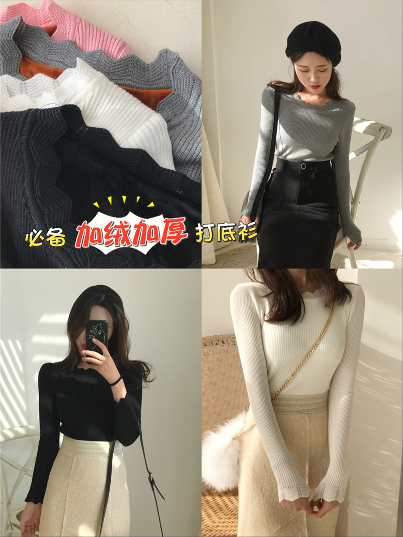 / 加絨毛衣女裝套頭修身新款秋chic冬季加厚保暖衣服打底針織衫上衣