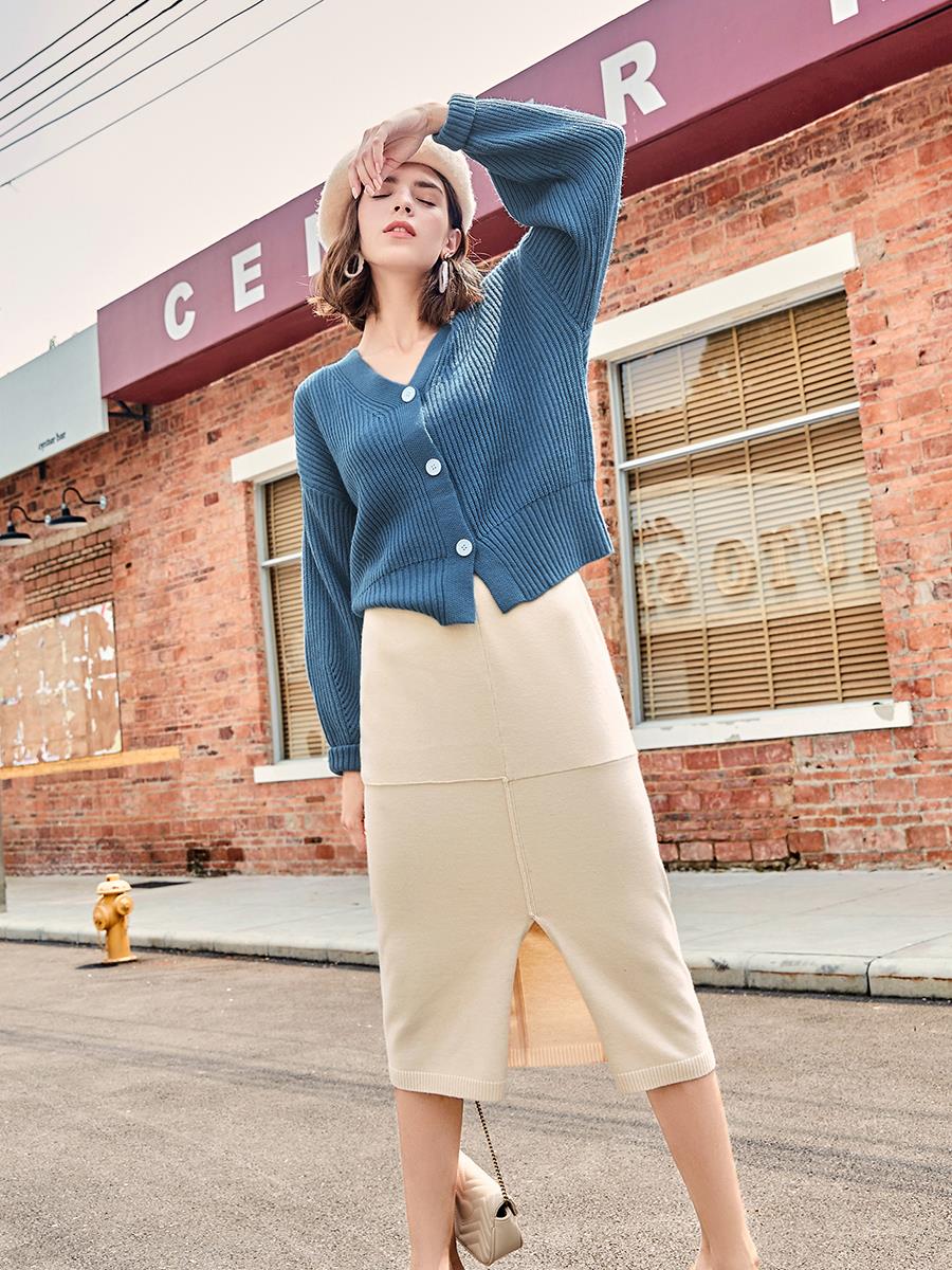 MG小象高腰針織半身裙女冬中長款寬松2018秋冬新款開叉a字裙子潮