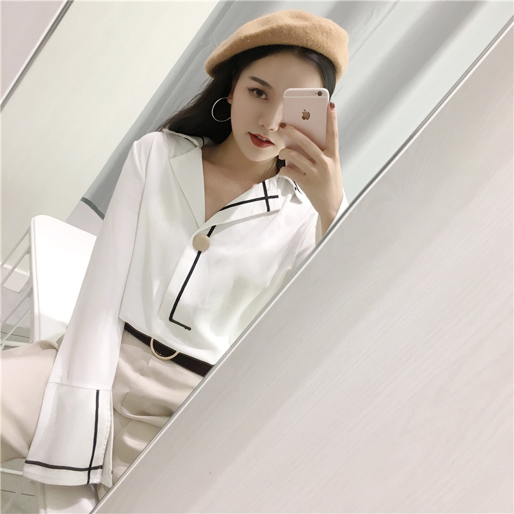 / 2018復古港味ulzzang百搭襯衣寬松長袖韓版秋裝新款雪紡衫上衣女