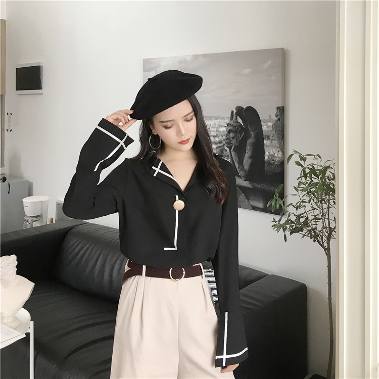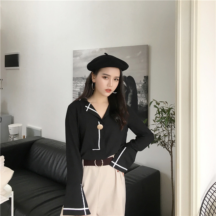 2018復古港味ulzzang百搭襯衣寬松長袖韓版秋裝新款雪紡衫上衣女