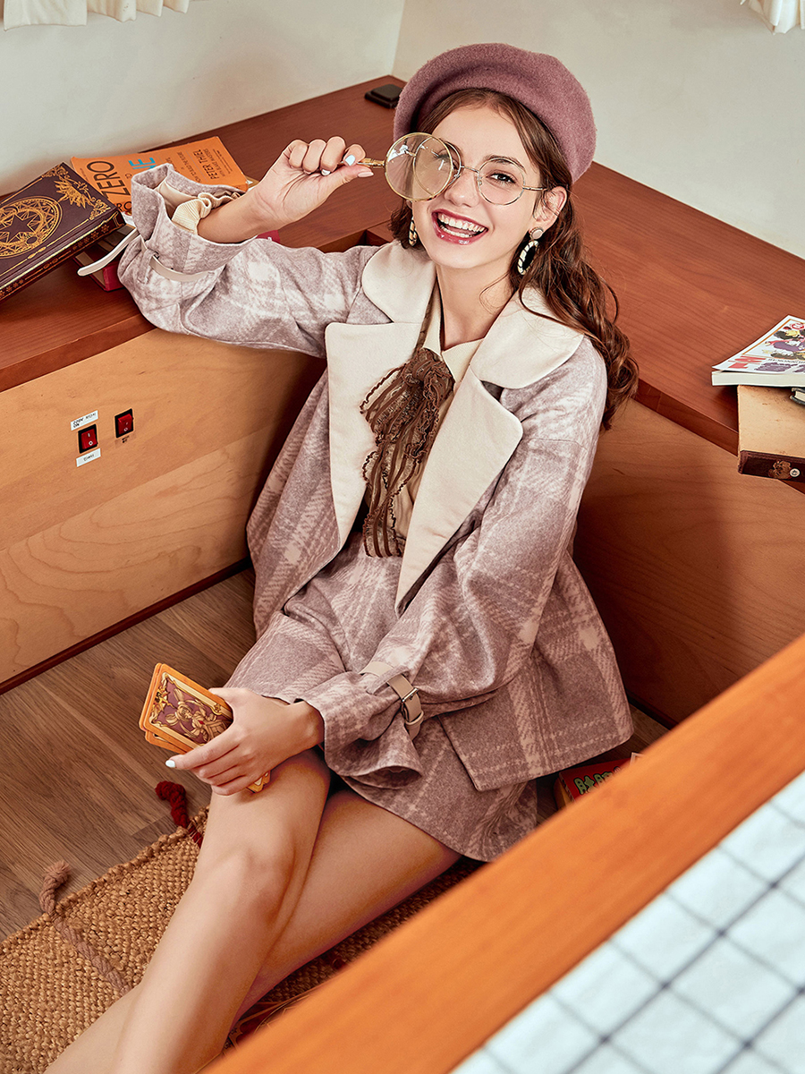 / MG小象格子休閑外套女冬新款時尚高腰半身短裙學院風寬松復古上衣