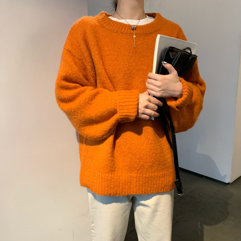 韓版女神套裝秋冬寬松套頭加厚慵懶風毛衣女+高腰直筒闊腿九分褲