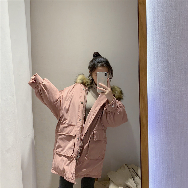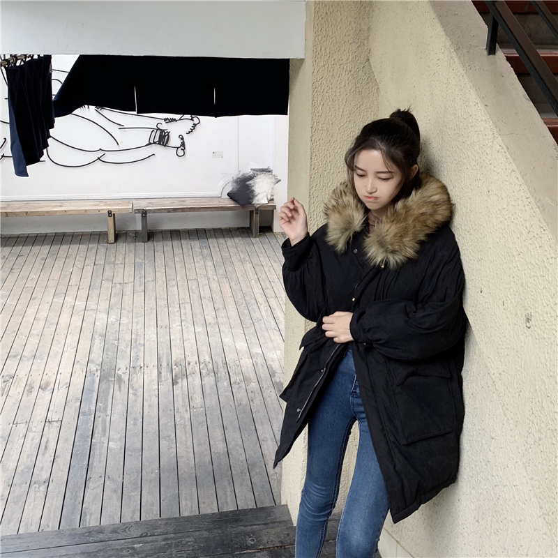 2018冬季新款時尚純色寬松大毛領外套加厚保暖女裝氣質百搭棉服潮