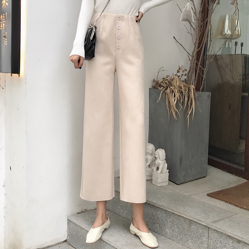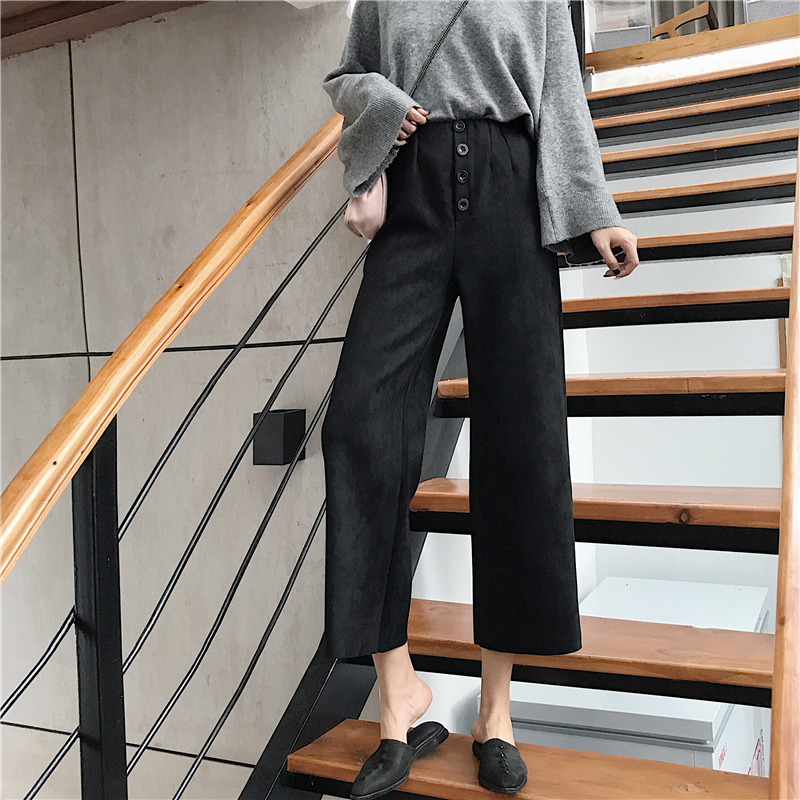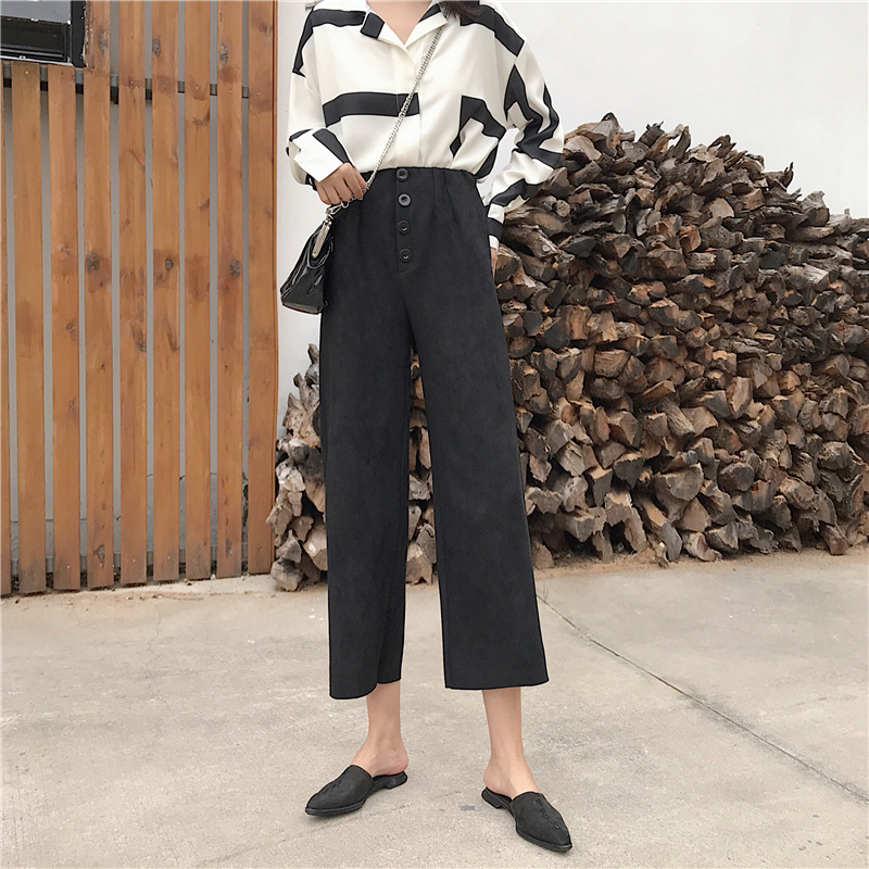 / 港味復古chic高腰休閑褲九分褲百搭秋季新款時尚闊腿褲直筒褲女潮
