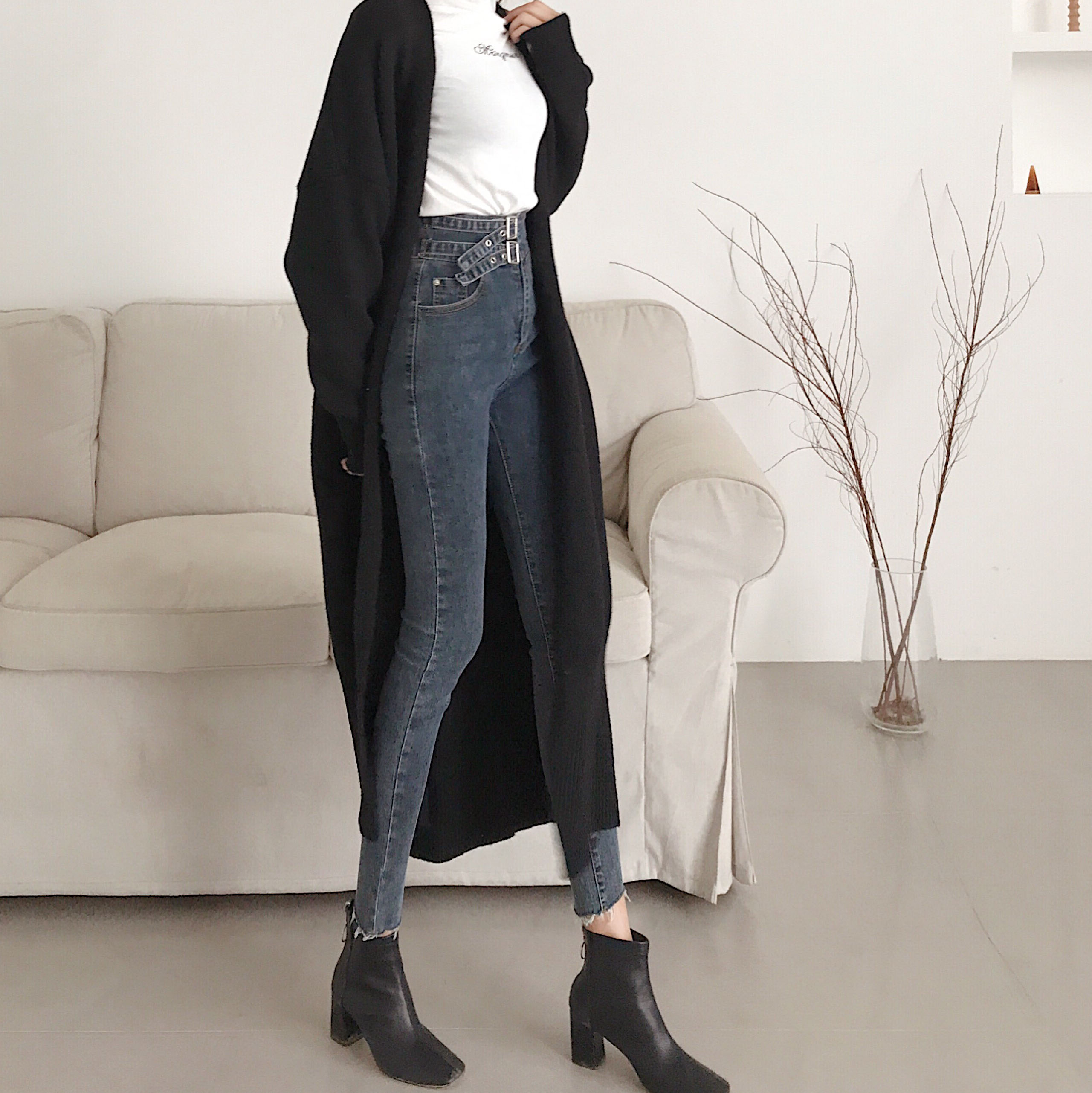 / 韓國顯瘦chic風高腰牛仔褲女秋冬2018新款百搭修身彈力小腳鉛筆褲