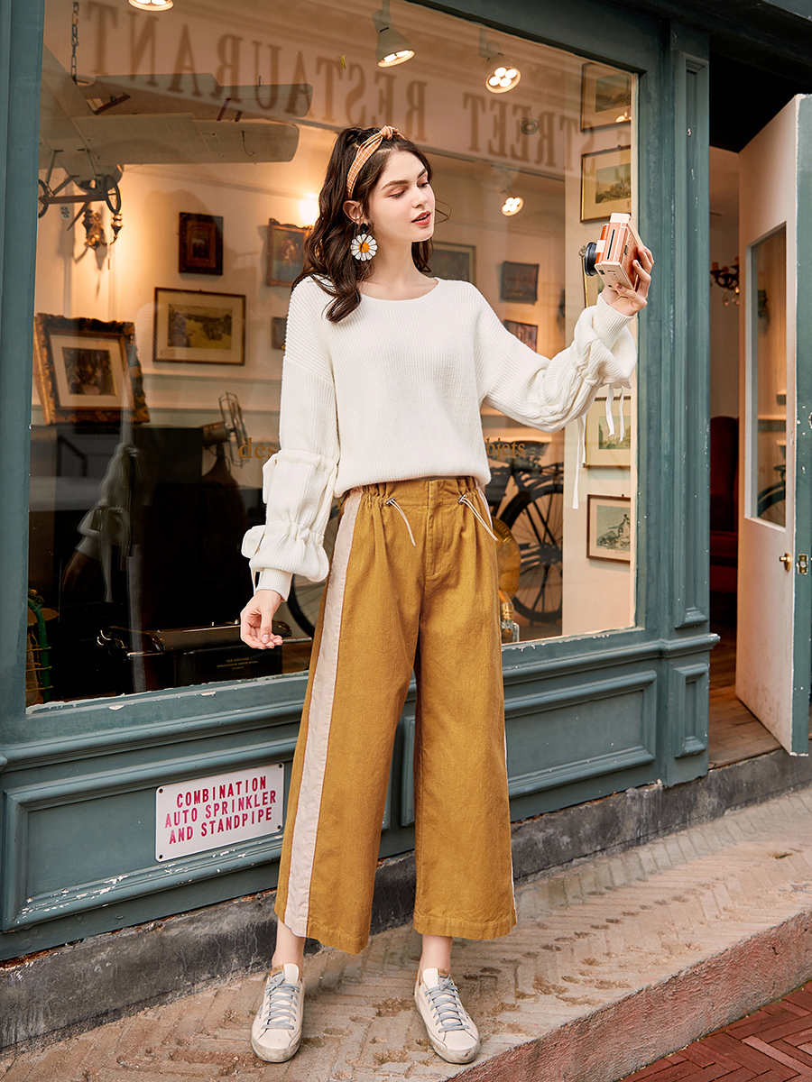 MG小象高腰闊腿褲女秋冬2018新款學生寬松休閑褲復古ulzzang褲子