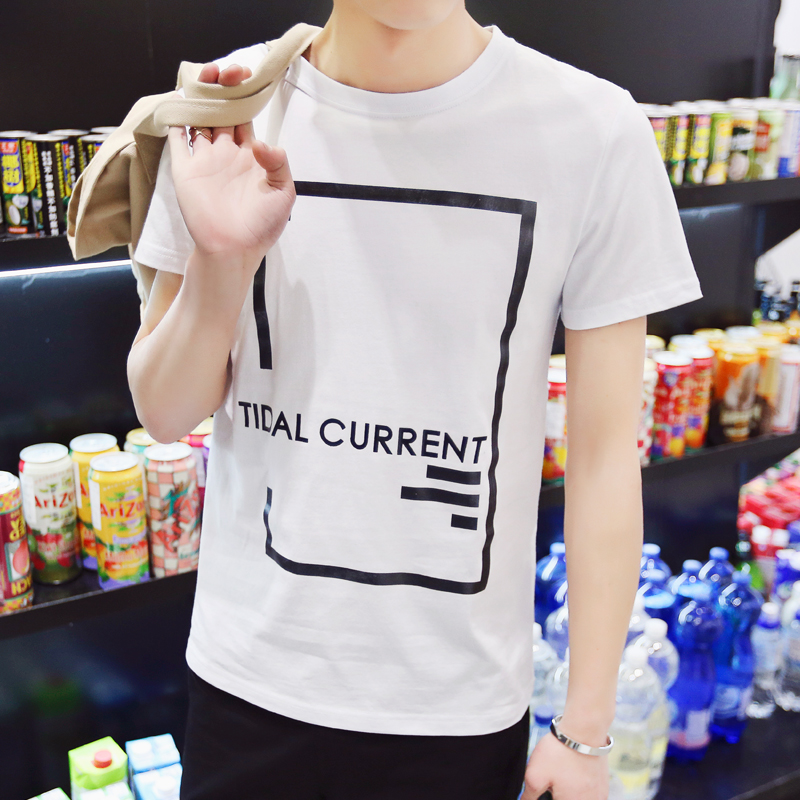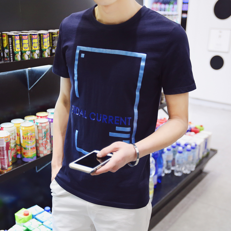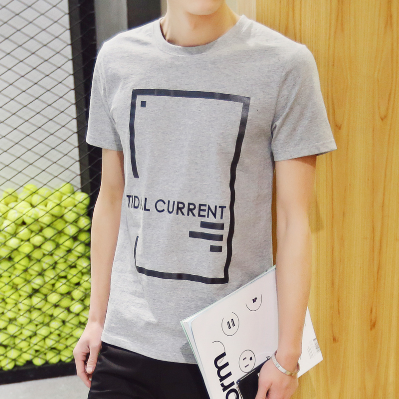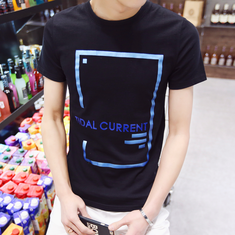 2016夏季新款男士純棉短袖T恤圓領修身印花半袖男裝上衣服體桖