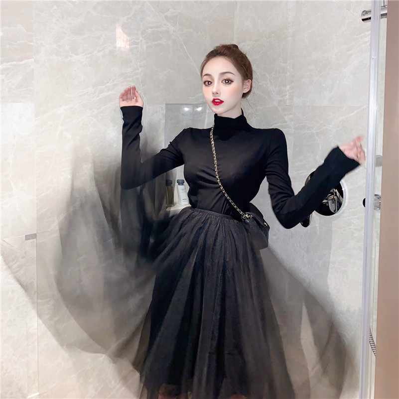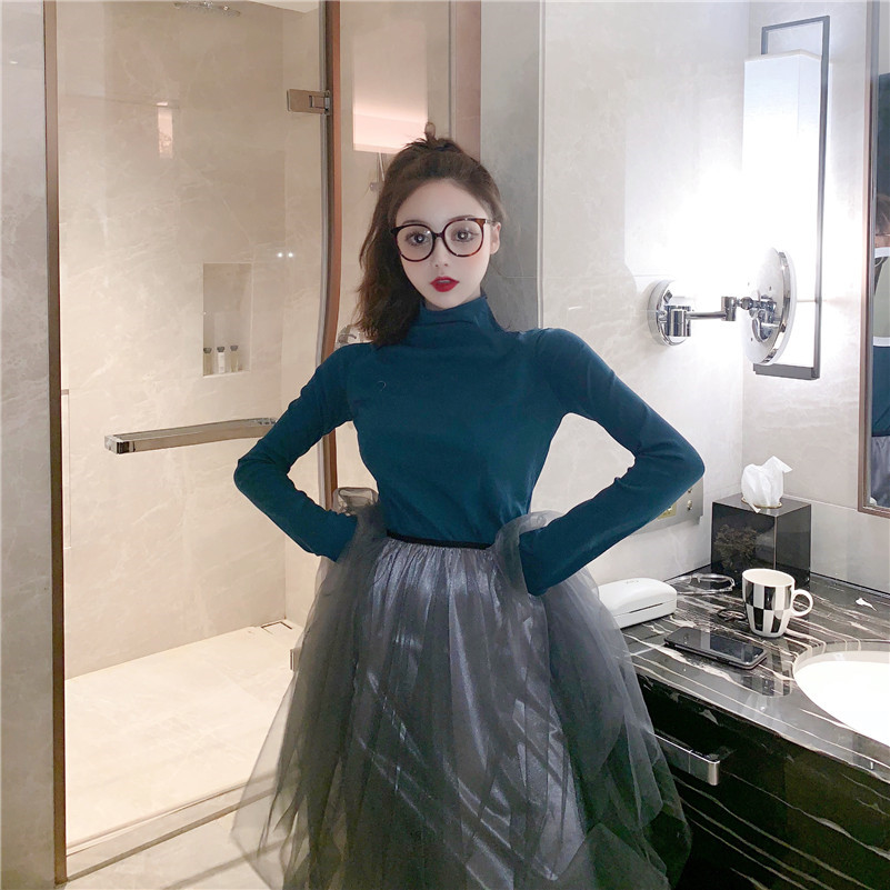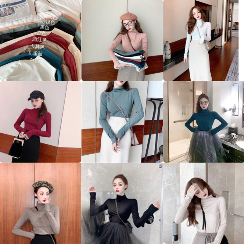 / chic上衣新款韓版秋季半高領內搭長袖T恤女裝修身顯瘦百搭打底衫