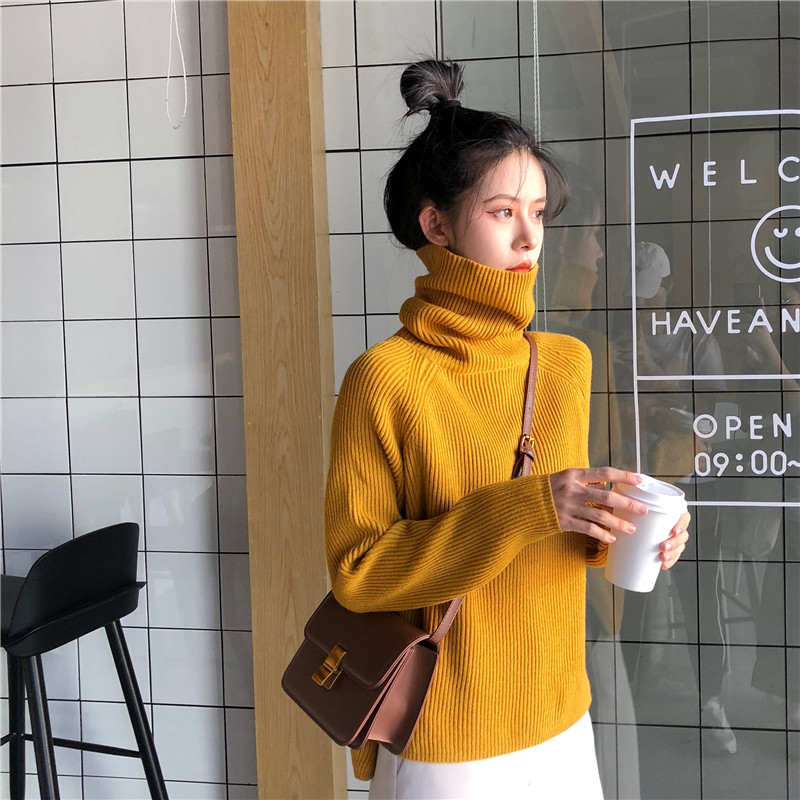 / 2018秋冬新款韓版時尚厚實上衣chic百搭氣質長袖前短后長高領毛衣