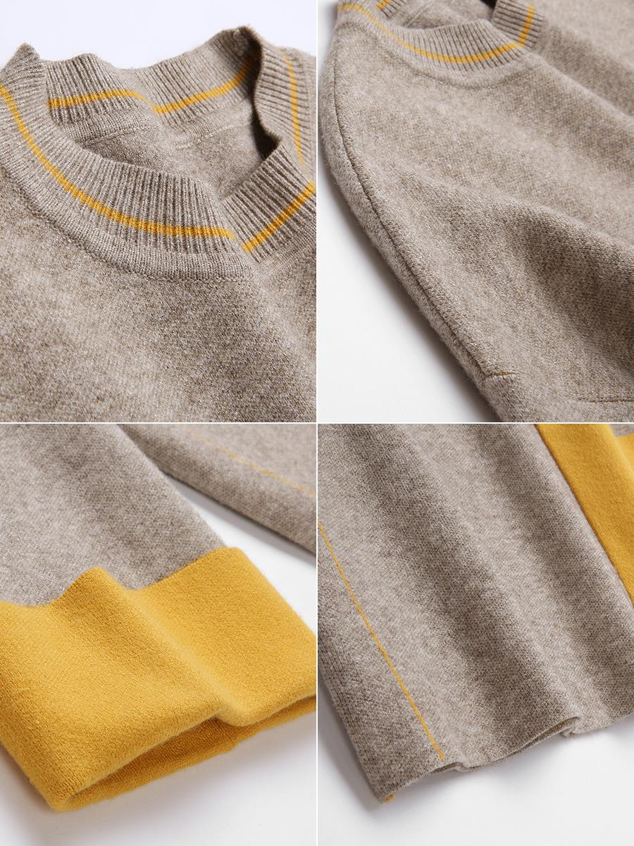MG小象拼色套頭毛衣女休閑高腰闊腿褲秋冬新款寬松顯瘦長袖針織衫