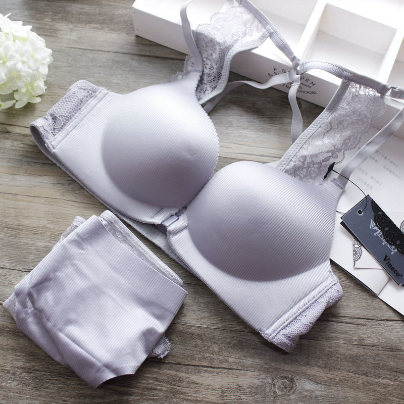 輕奢優雅 前扣蕾絲肩帶無痕一片式無鋼圈女內衣文胸套裝 前扣設計,完美無痕 美背蕾絲,優雅浪漫。可以搭配夏季的各種美裝 銀色優雅 黑色性感 【 尺寸 】 建議按照平時文胸尺碼選擇,有插片
