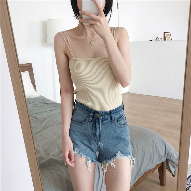 / 韓版簡約百搭針織吊帶背心雙肩帶打底短款小清新學生chic風上衣女