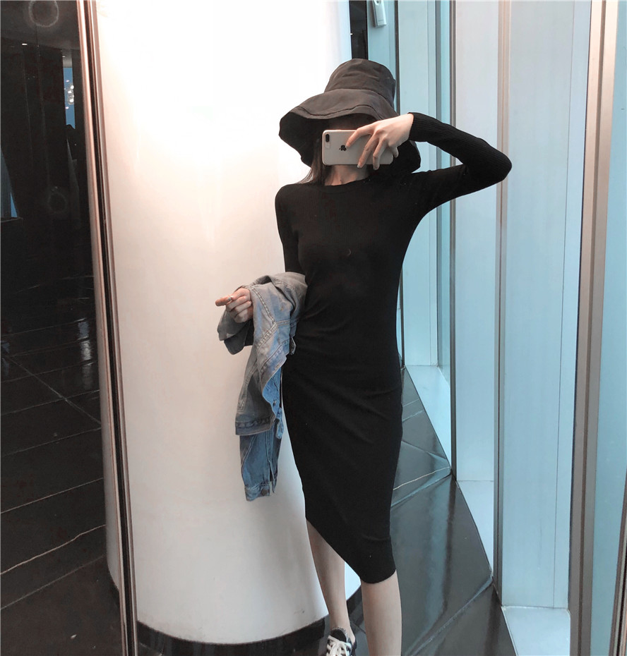 2018秋裝新款韓版女港風牛仔短外套修身圓領包臀連衣裙時尚套裝潮