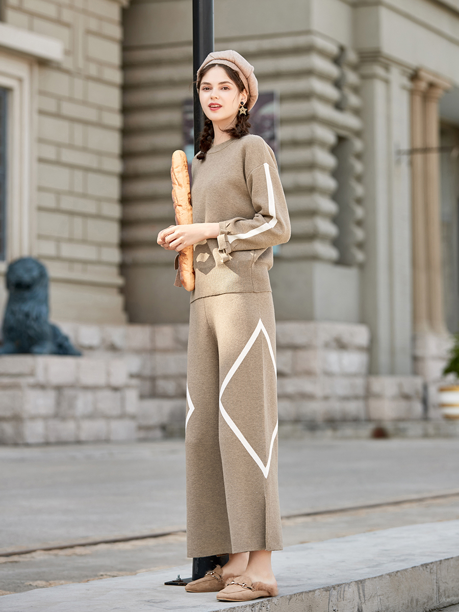 MG小象慵懶風套頭毛衣女2018新款寬松高腰闊腿褲子圓領chic上衣潮