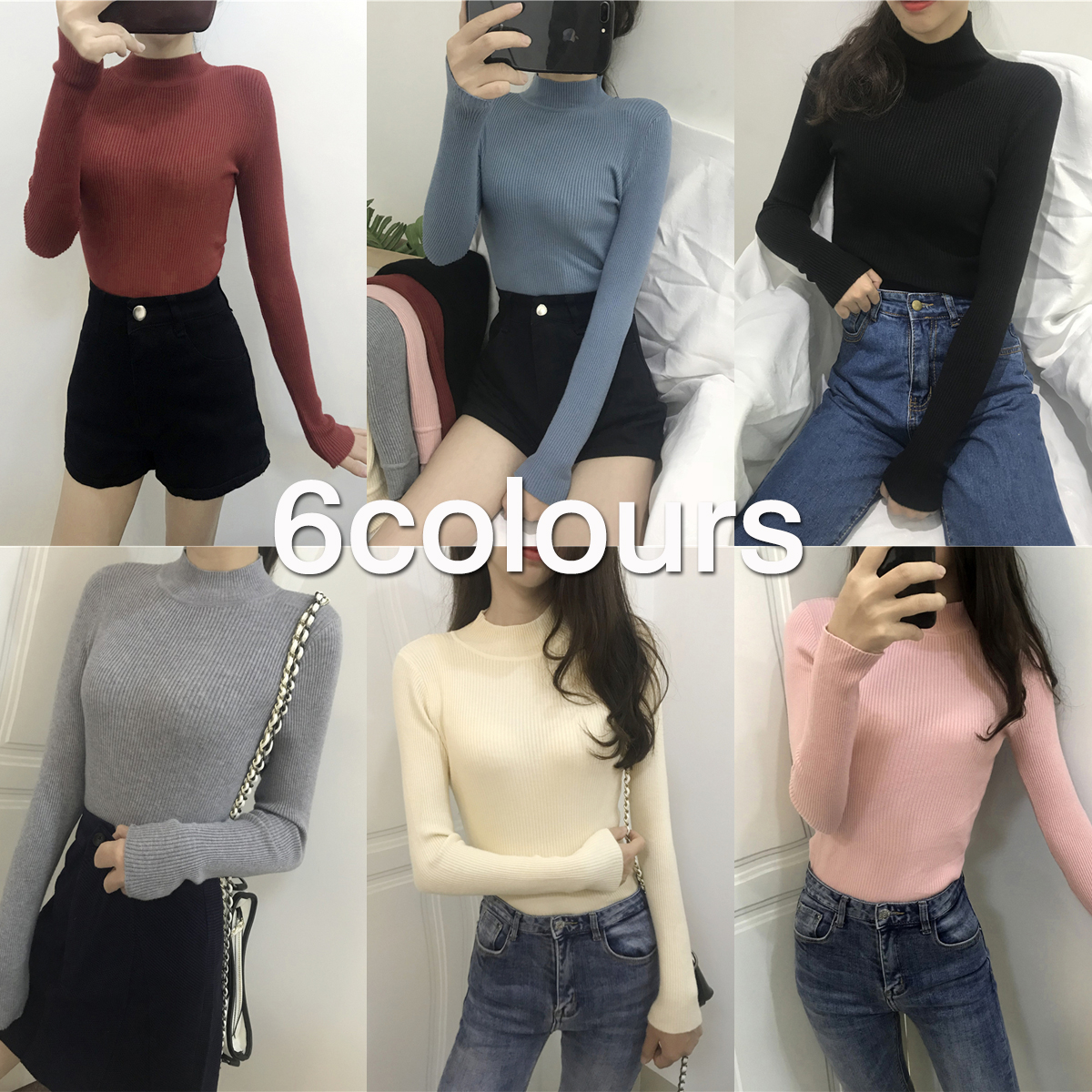 / 半高領套頭毛衣打底衫女秋冬韓版新款chic百搭修身緊身針織衫上衣