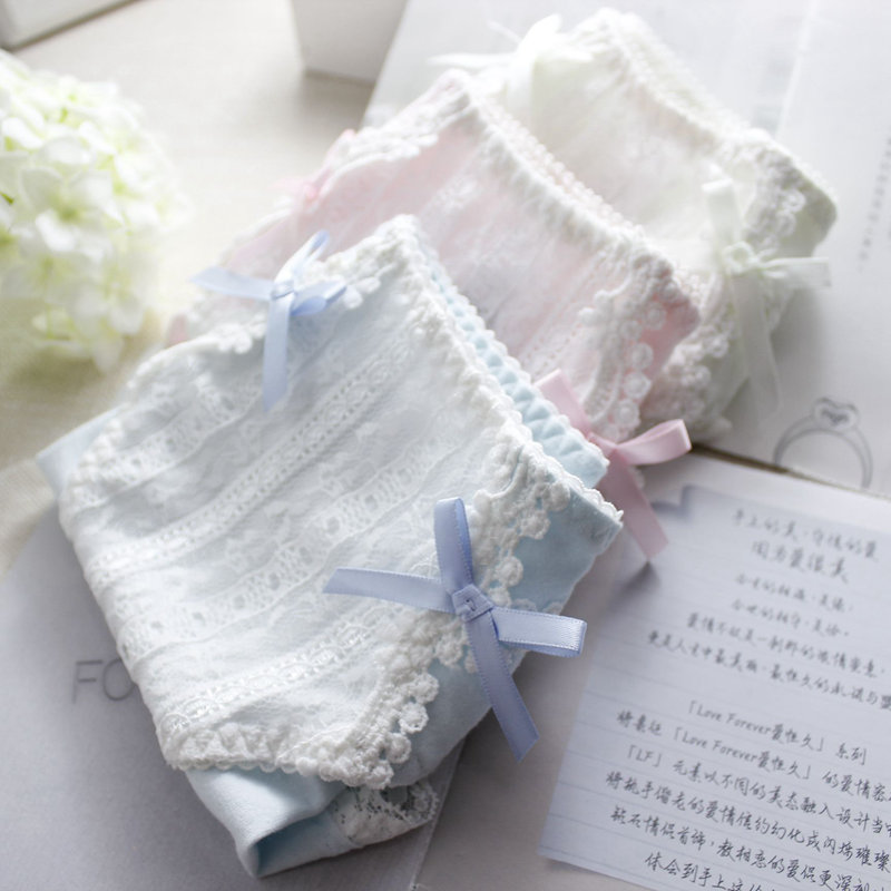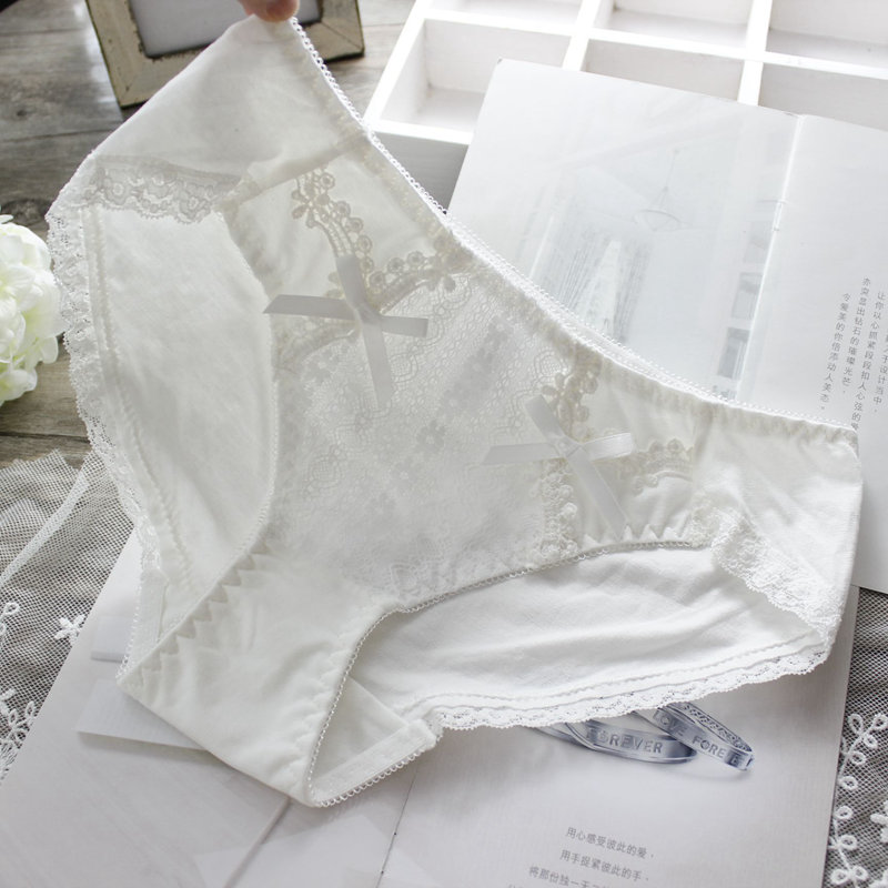 韓版優雅甜美時尚純棉透氣白蕾絲低腰三角女內褲基本款