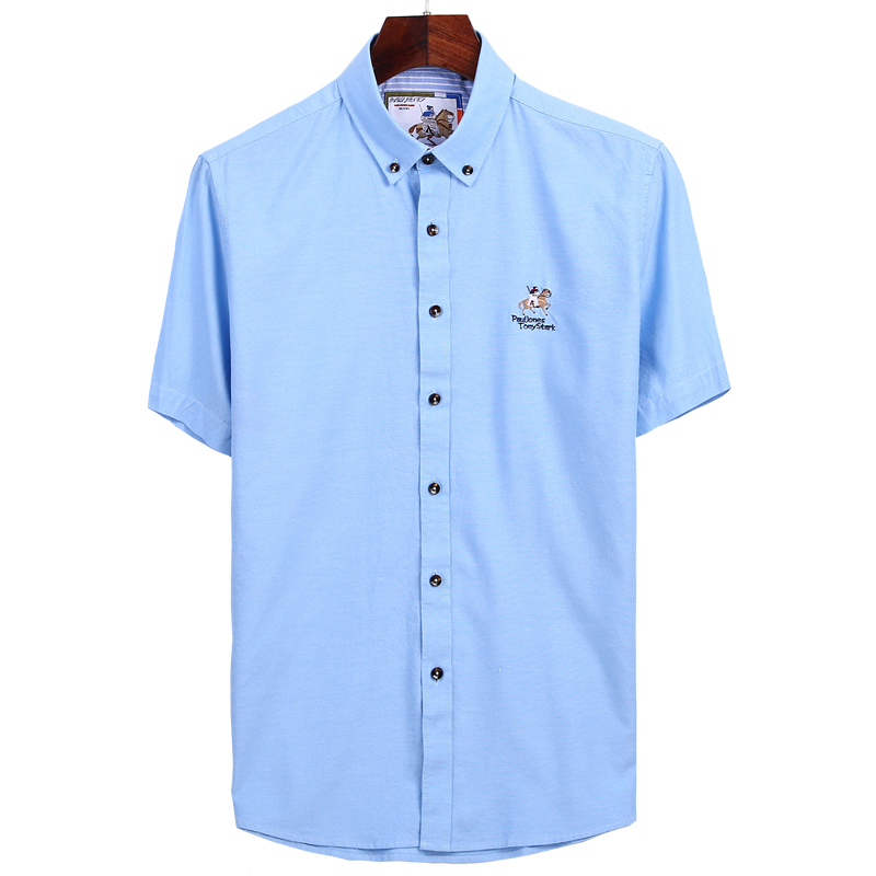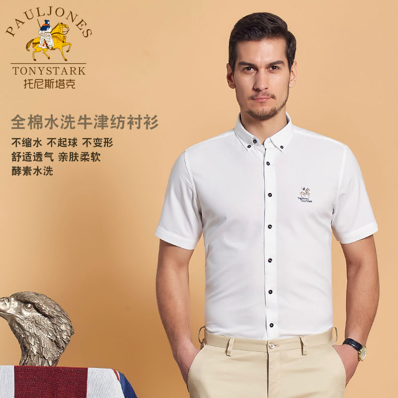 / 夏季男士全棉短袖襯衫純白色扣領純棉牛津紡商務休閑中年半袖襯衣