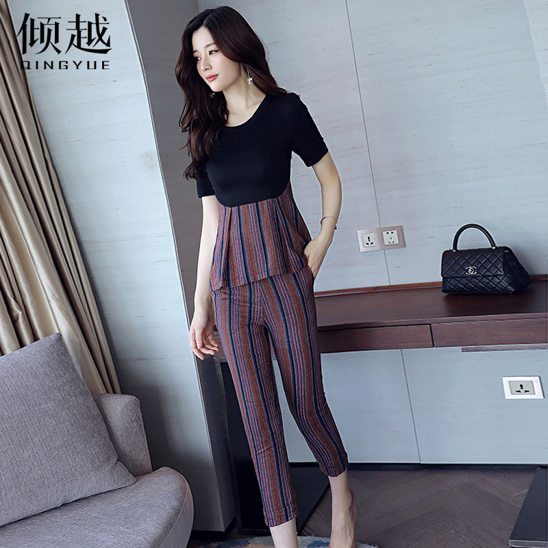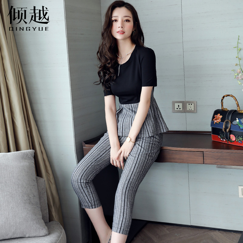 / 2017夏季新款女裝氣質名媛時尚套裝女韓版中長款顯瘦七分褲兩件套