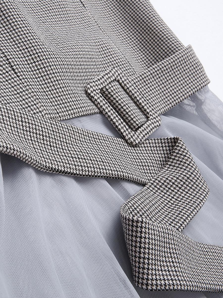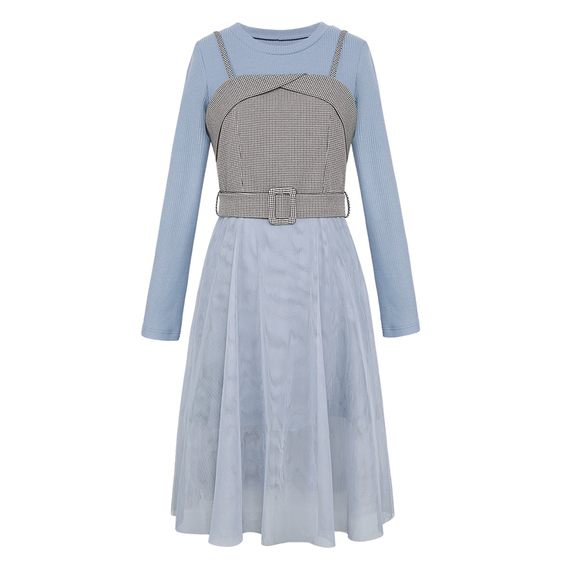 MG小象長袖連衣裙女秋冬2018新款網紗拼接吊帶裙中長款收腰裙子潮