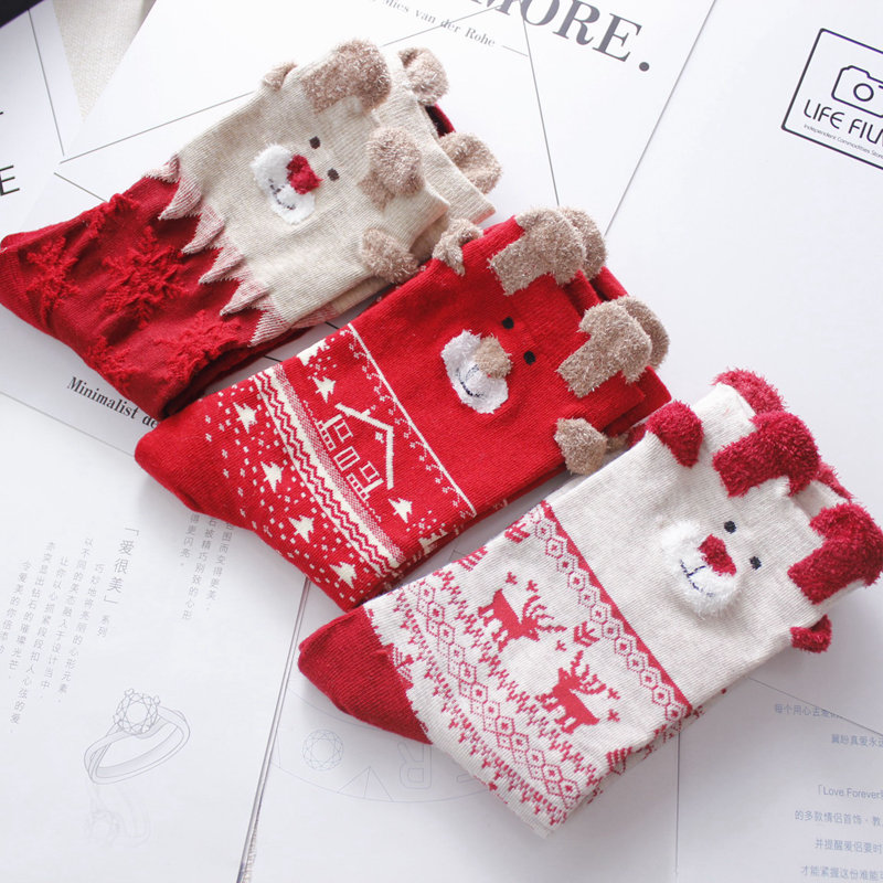 新年推薦中國紅可愛卡通韓版福襪踩小人本命年女生純棉中筒襪子