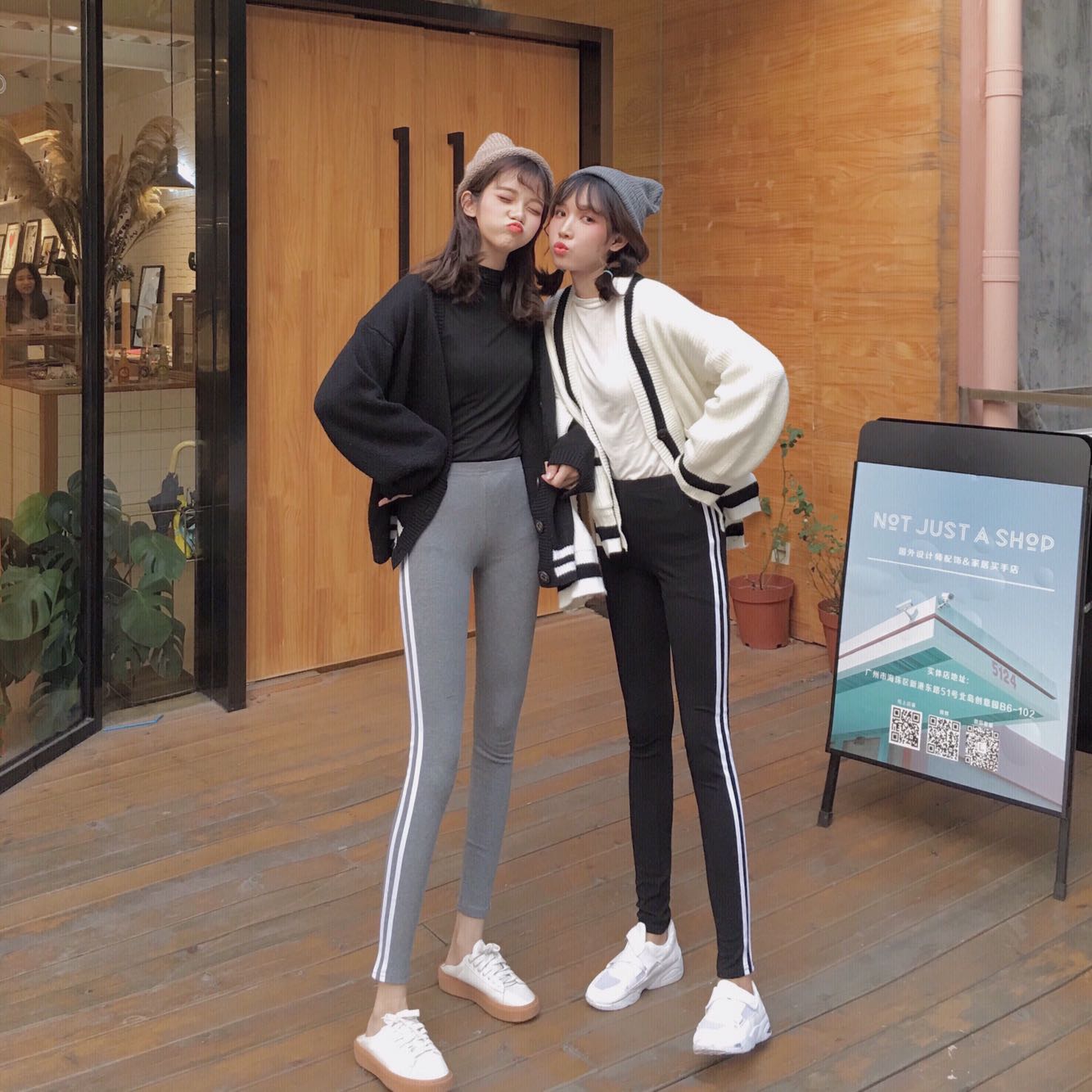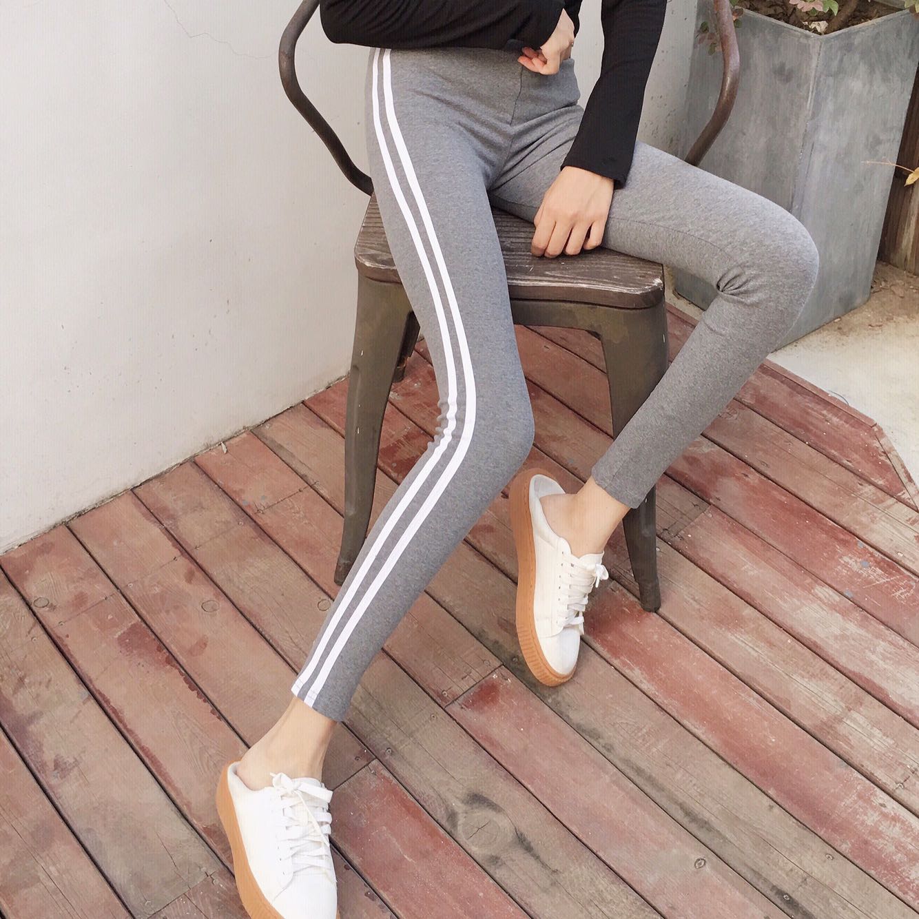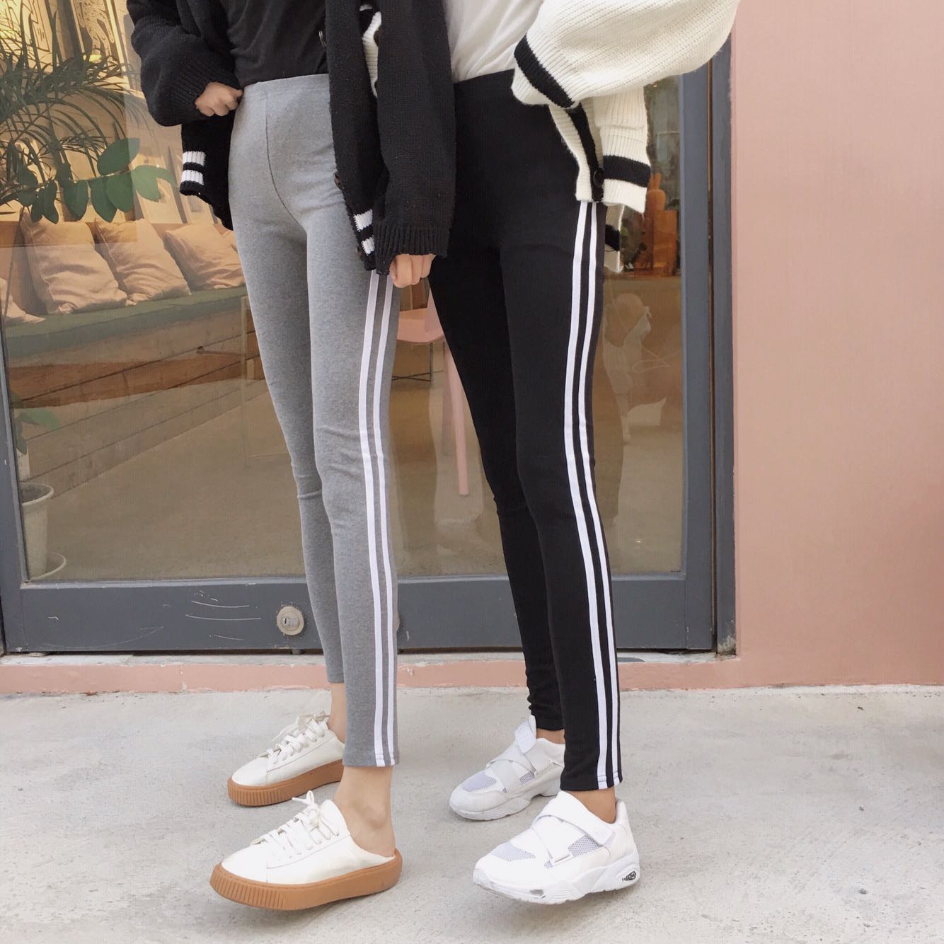/ 外穿打底褲女2018新秋韓版時尚復古氣質百搭彈力雙桿白邊打底長褲
