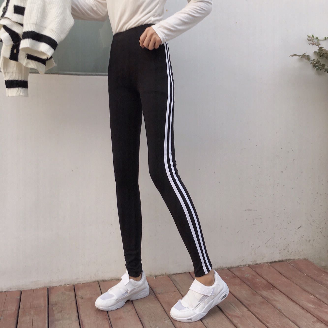 外穿打底褲女2018新秋韓版時尚復古氣質百搭彈力雙桿白邊打底長褲