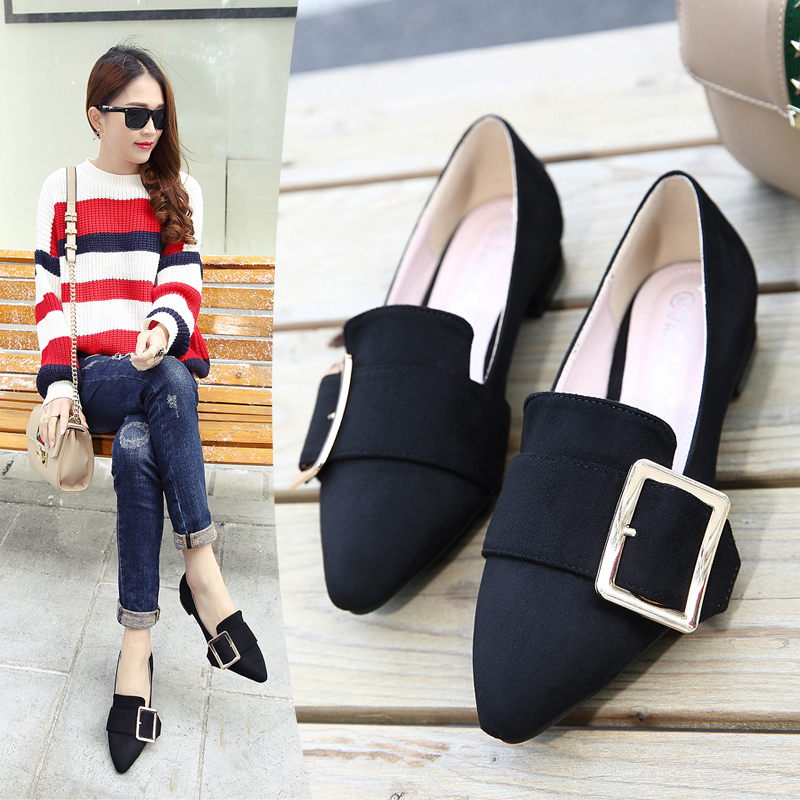 / 鞋子女春新款韓版學生 百搭 時尚尖頭粗跟低跟單鞋女春天女鞋